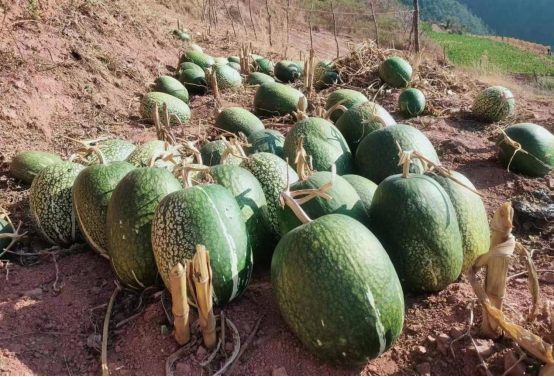眼下,一街乡平掌村的地里满是圆润饱满的“金瓜”,有的“躺”在田中央,有的“蹲”在田埂上,有的“倚”在核桃树上,给万物复苏的季节增添了几分灵气,更是一派丰收的喜人景象。“金瓜”又名“高山打瓜”,从西瓜演变而来,产出的黑瓜籽颗粒饱满,营养价值极高,因拳打而食和含籽量多而得名。