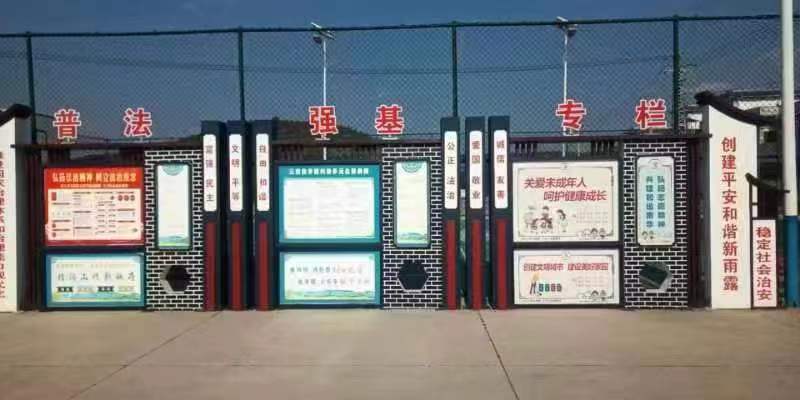 广泛参与,营造氛围。雨露乡广泛发动村组干部参与到普法宣传中,充分利用全乡电子显示屏、村党群服务中心等载体进行广泛宣传,扩大法治宣传覆盖面。在乡政府院内、七个村委会共制作普法展板11块;杨方村法治文化广场设立普法专栏1个;制作宣传标语200条,覆盖到各小组;制作布标20条,覆盖到各村委会;雨露中心完小学生制作漫画宣传15张等。同时,通过网格微信群、居民微信群发布普法视频,通过喇叭播放普法音频,基本实现普法宣传全覆盖、无死角。