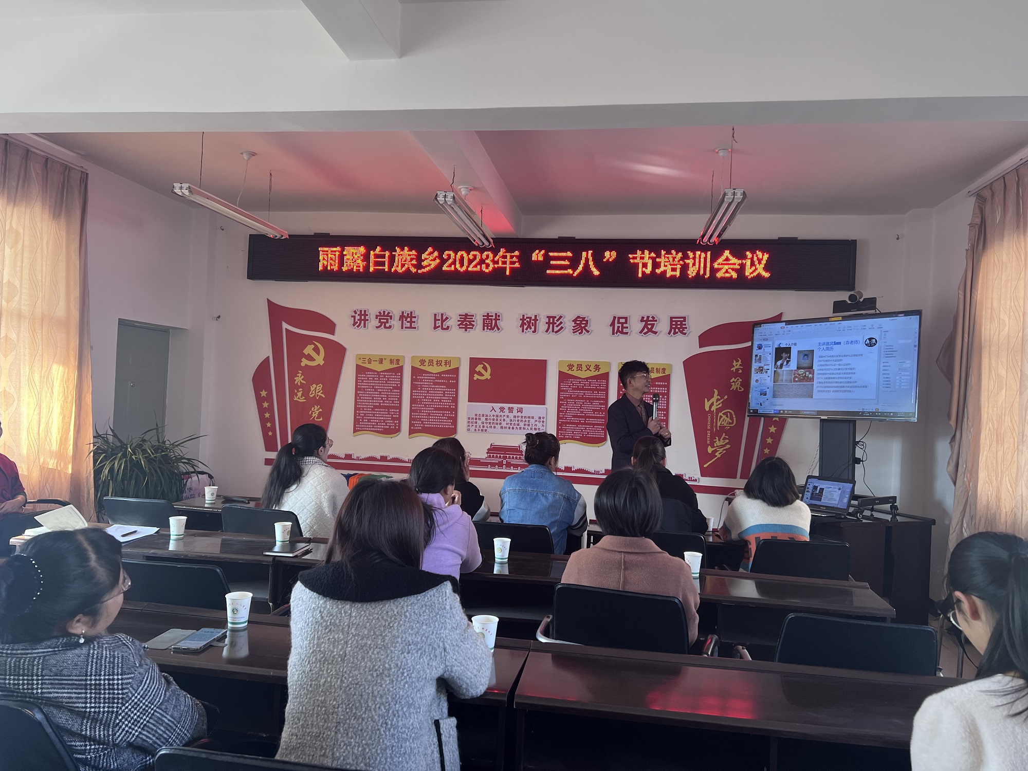 开展一次礼仪培训。3月8日上午,雨露乡有幸邀请到阿呀噜田园农庄投资人杨明洪给全乡女干部职工开展了一次主题为“你的形象价值百万”的培训,从形象管理、仪容仪表、礼仪形态等方面进行了细致指导,女职工们纷纷表示受益匪浅。