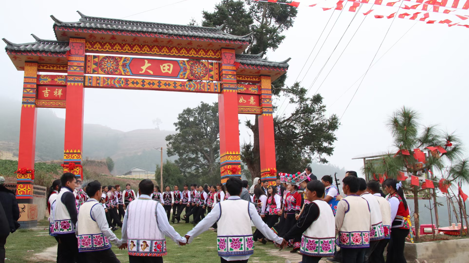 2月25日,料峭春寒、阵阵寒风也阻挡不了沙桥镇大田村男女老少从四面八方赶来齐聚一堂的热情,他们身着漂亮的彝族服装、在新落成的村大门前载歌载舞,共同庆祝大田村人居环境提升村大门落成仪式。