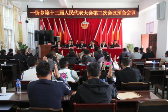 3月16日下午,一街乡党委书记鲁应国同志主持召开了一街乡第十三届人民代表大会第三次会议预备会议。本次会议应出席人大代表57人,因病因事请假9人,实出席48人,出席人数符合法定人数。非人大代表乡领导班子成员、各办中心所负责人、村党总支书记等20人列席会议。
