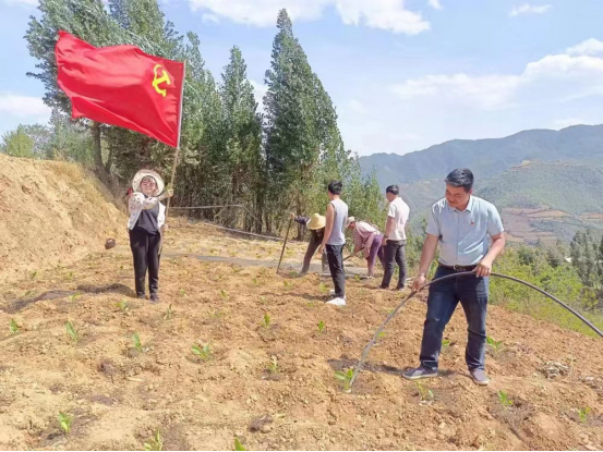 “大家要把烟苗竖直放入刨开的小土坑内,成直立状态,覆膜时一定要注意膜与烟苗的距离……”烤烟移栽地现场,在技术人员的指导下,党员们纷纷行动起来,全体党员与烟农一起撸起袖子、挽起裤子、弯下身子,浇水、放苗、覆膜,现场分工明确、协作配合,为起好的田垄送去生机。