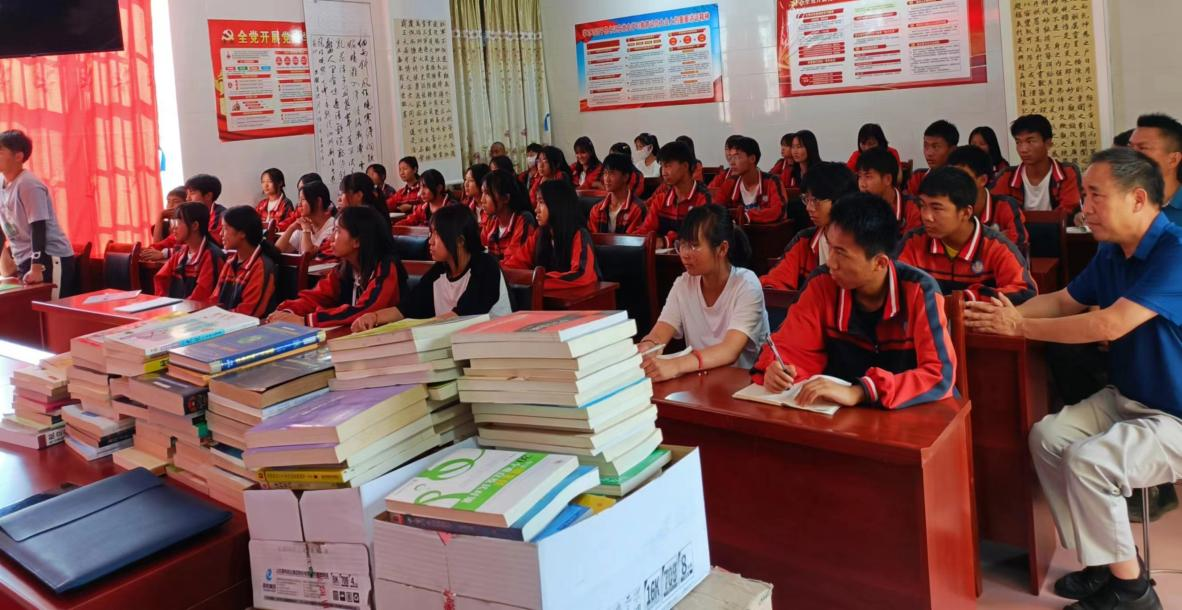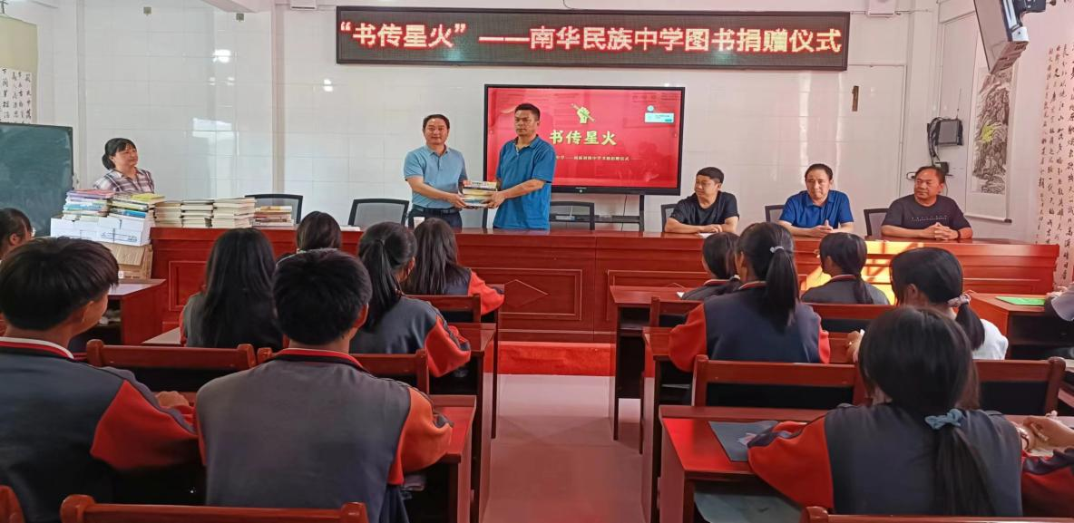 下午4时,由南华县民族中学办公室主任夏先龙、校团委书记胡晓萍、女工委主任吴茜芬、校团委副书记曾军、东南大学研究生支教团团长、云南分队队长陶翀新、东南大学研支团成员王乐言、王昕琰一行人也来到我校,进行了以“书传星火”的图书捐赠仪式。捐一缕书香,献一片真情。一叠叠垒起的图书,凝聚着一份份浓浓的情意、赤诚的爱心。赠人玫瑰,手留余香,用爱心送出一本书,有可能就成就一个梦。书本在学生手中传递,知识也在学生之间共享。