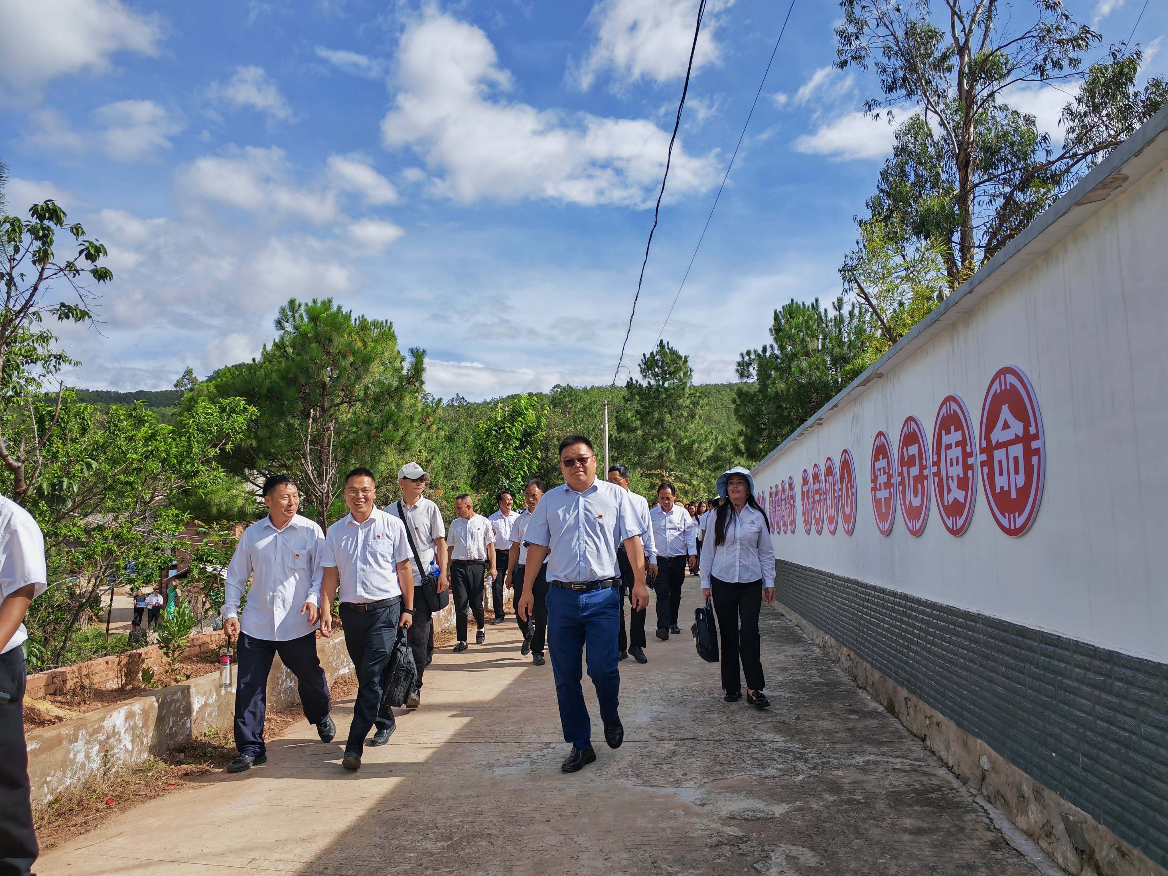 与会人员首先观摩了金竹林村委会小箐河小组,观摩过程中,金竹林村党总支书记对小箐河小组人居环境整治、特色亮点打造进展情况作简要汇报:一是“护山”,严防火情,连续10年无火情,守好绿水青山;二是“治水”,在党委政府帮助下,通过爱心企业捐赠2.5万元完成铁厂河到何家湾6公里河道治理工作,并自发组织群众在河道沿岸种植核桃、李子树、樱花等绿植200余株,完善美化绿化工作。大家认真聆听,积极交流讨论,探讨符合各村实际的做法。