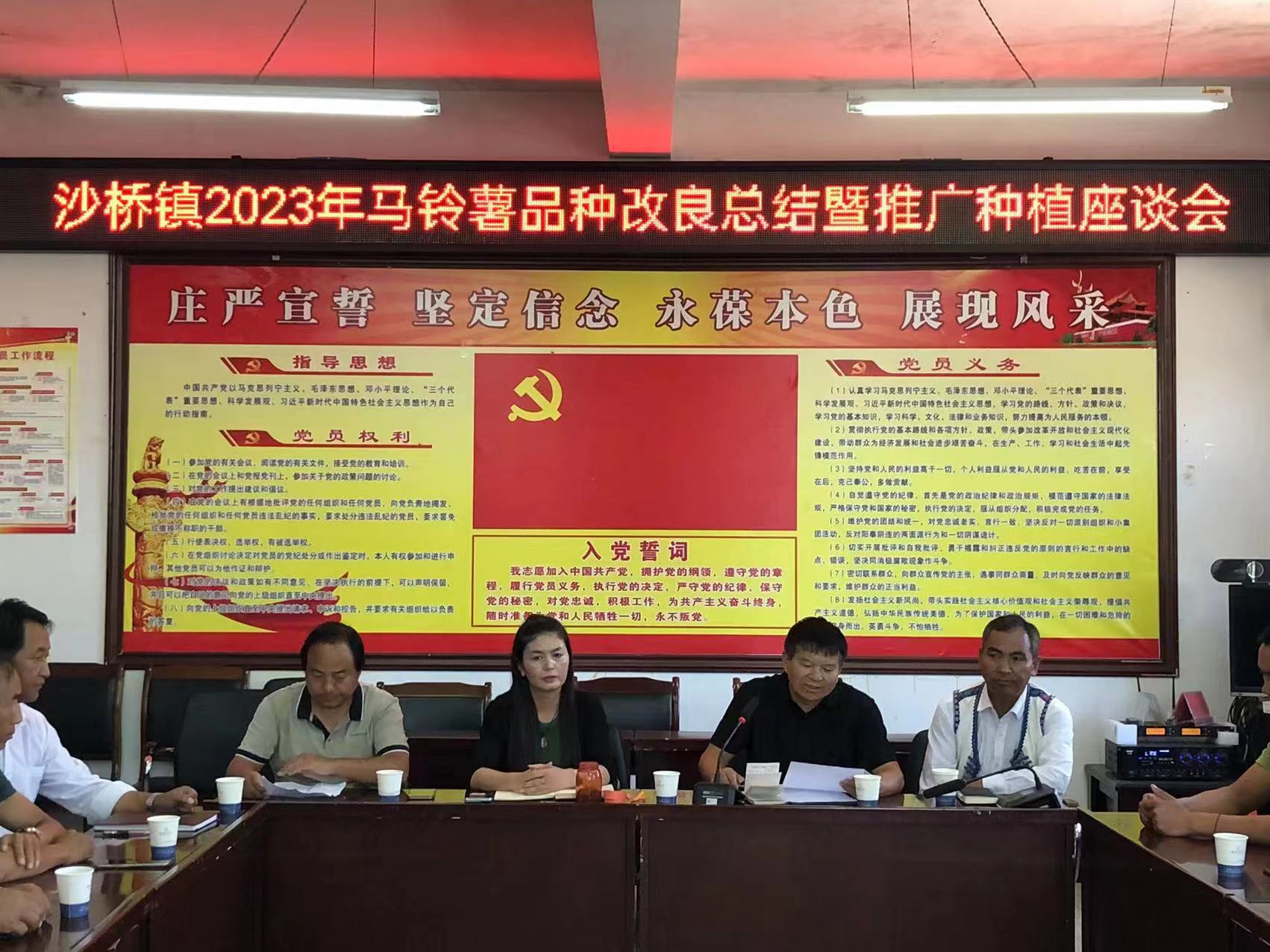7月18日,沙桥镇2023年马铃薯品种改良总结暨推广种植座谈会在沙桥镇于栖么村委会召开,县农业农村局农业技术推广服务中心技术人员、沙桥镇人民政府分管领导、农业农村服务中心工作人员、南华县光顺农产品种植营销专业合作社社长、于栖么、石桥河、瓦黑井、松树地、三河底5个村委会书记、主任及各村一名小组干部代表;于栖么村委会马铃薯种植大户5户参加会议。