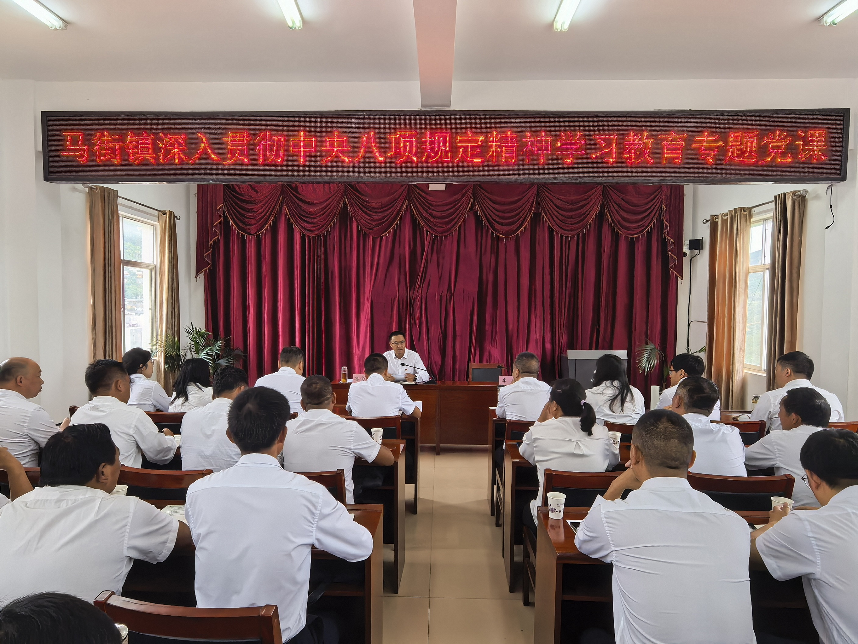 鲁富兴围绕深入贯彻中央八项规定精神学习教育,为与会人员讲授了一堂深刻且生动的专题党课,紧密结合新形势新任务新要求,教育引导广大党员、干部持之以恒正风肃纪,以优良作风凝聚党心民心,为推动马街经济社会高质量发展提供坚实的政治保障。