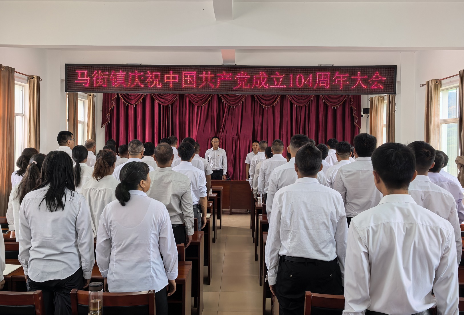 6月30日,马街镇组织召开庆祝中国共产党成立104周年大会,激励全镇广大党员传承精神血脉、凝聚奋进力量,在新征程上奋勇前行、再立新功。县委常委、县委统战部部长鲁富兴到会指导,镇党政班子成员、镇级机关企事业单位各党支部全体党员、各村党总支书记参加会议。