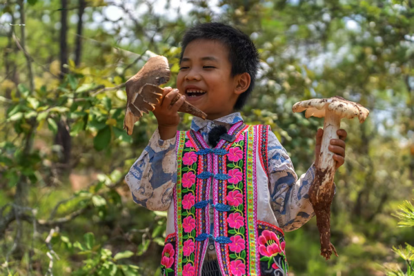 “这是最常见的牛肝菌,这是可以烤着吃的青头菌,这是有微毒的见手青,要高温过油才能吃.....”楚雄彝族自治州南华县雨露白族乡的洒披武村委会“菌窝子”进山门口,52岁的李从富用不太流利普通话向一群七八岁的孩子讲着野生菌知识。谁曾想,这个皮肤黝黑的中年男子,摇身一变成了附近有名的“菌向导”,每年八九月份,每天至少要接20人以上的拾菌团队。