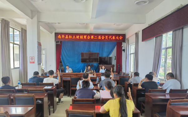 本次大会首先听取上一届商会工作报告,审议并通过新修订的《南华县红土坡镇商会章程》《南华县红土坡镇商会会费收取使用和管理办法》,随后全体会员代表以举手表决的方式选举出新一届商会领导班子5人,新商会会长向大会作表态发言。