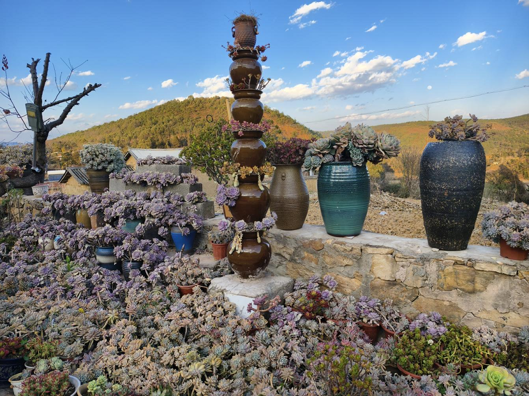 每个人都有向往的地方,可能是一间温馨的咖啡馆,也可能是开满鲜花的花房,在雨露古村落里便藏着这样一家门前屋后种满多肉的小院。推门映入眼帘的便是各式各样的多肉,紫乐、糖彩虹、紫珍珠这些普通的多肉在这里展现出了逆天的颜值,颜色娇艳胜过春天的玫瑰。“寻着村里的羊肠小道,既是找到这个网红多肉小院打卡,又是体验探秘古村落的魅力,这里仿佛有神奇的魔力,只要走进来,就能让你的心沉静下来,而我就是向往这样的诗和远方”,数次走进多肉小院打卡的王女士,是个不折不扣的多肉迷,住在昆明市区的她,有空就会到雨露乡来,除了“淘”几盆多肉带回家,就是在古村落找一个安静的院子住几天。
