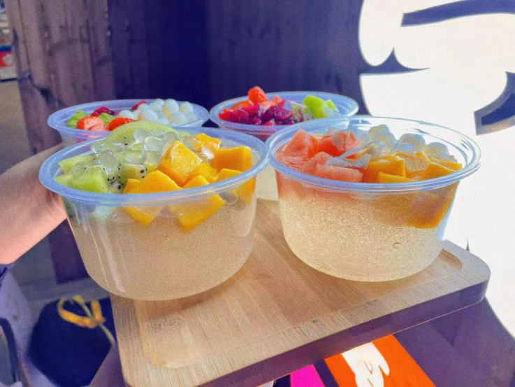 熊启萍做的手搓冰粉可是村里一绝,她说:“好吃的冰粉一定是用纱布包着冰粉籽在水里搓出来的,最后再倒入芒果、西瓜、猕猴桃、草莓等水果,夏天很受欢迎,每个街天都是供不应求,我要把一街手搓冰粉的招牌打出去。”