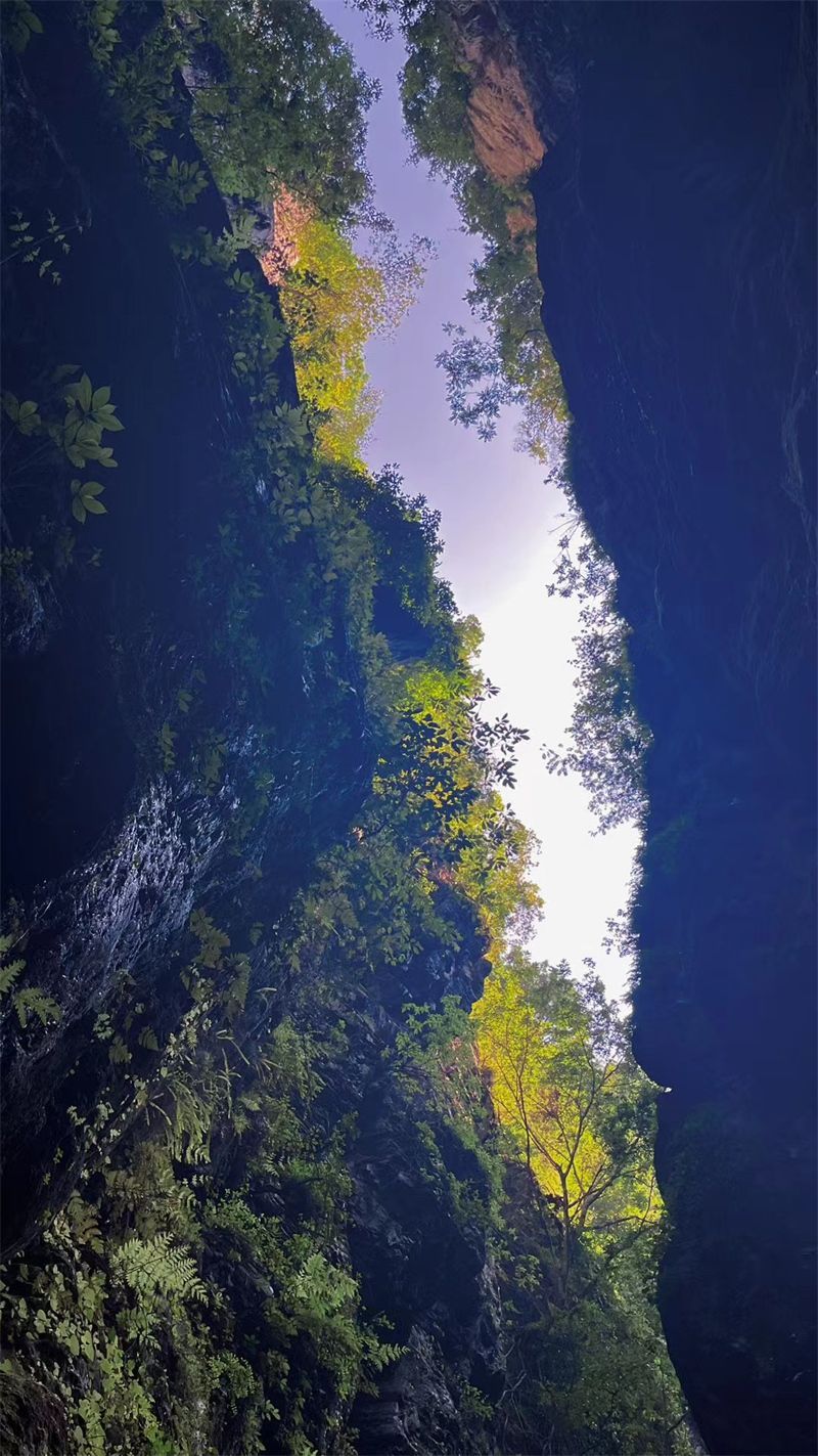 都说“马街一线天,云浮山水间”,昨日又访“一线天”峡谷,我们一路溯溪而上,依水而行,这里,山的雄壮与水的灵动不约而遇,上万年的自然风化与流水侵蚀,将两岸的岩石雕琢成了“天门地缝”,远看像是造物主肆意描绘的一幅画卷,近看却是刀削石刻、鬼斧神工。