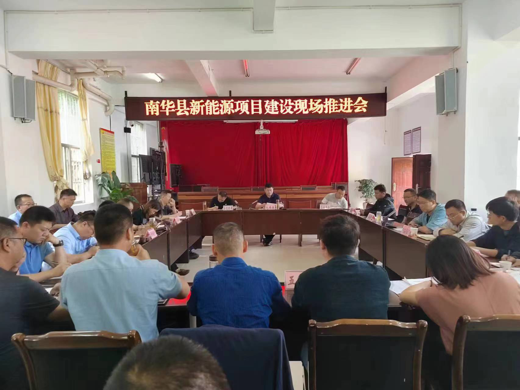9月28日,县委常委、县人民政府常务副县长毛焕朝主持召开全县新能源项目建设工作推进会,听取新能源项目推进情况,找准问题,细化措施,狠抓落实,进一步推动新能源领域项目建设赶进度、提速度。县源网荷储专班、县级要素保障部门及一街乡、五街镇、罗武庄乡主要领导及分管领导、华电南华新能源开发有限公司、南华云伊电投智慧能源有限公司、中电南华公司相关负责人共35余人参加会议。