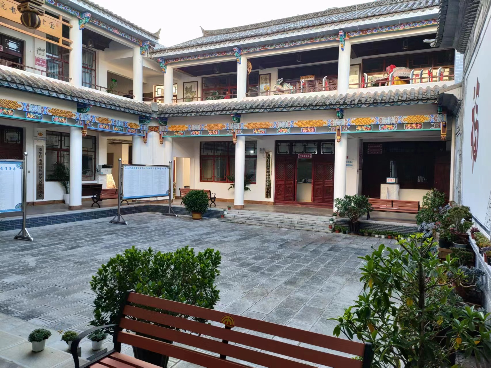 雨露乡在白族文化传习所的基础上成立便民服务中心,临街而设,是一所具有独特的白族文化四合院,院内宽敞明亮,按功能相对集中、方便服务的原则合理划分咨询导办区、审批区、社会事务区、农业综合服务区。