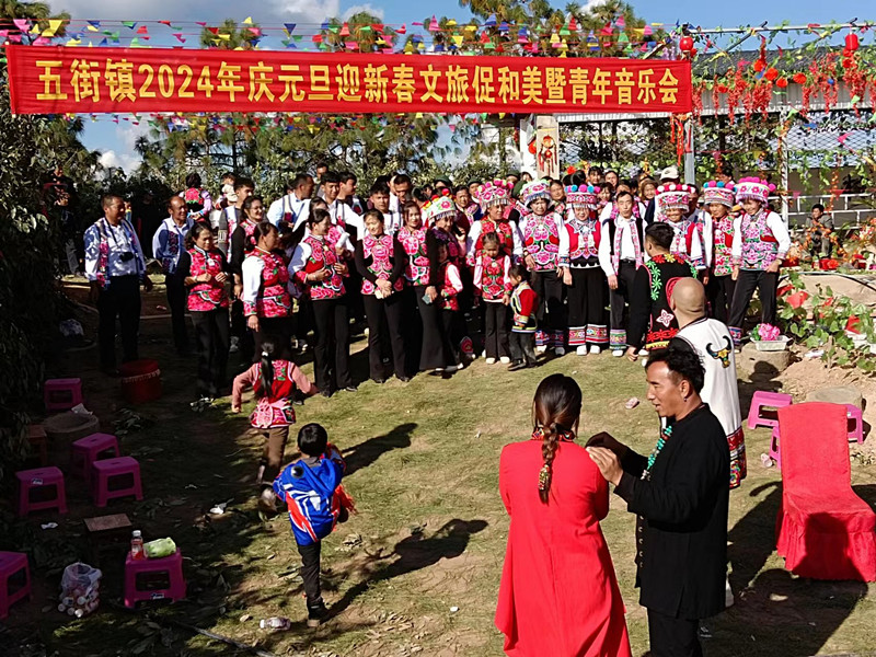 为深入学习习近平新时代中国特色社会主义思想,传承发展优秀传统文化,大力实施文化惠民工程,全面展示五街镇各族群众的良好精神风貌,振奋精神、凝聚力量、攻坚克难、奋发图强,助推巩固拓展脱贫攻坚成果同乡村振兴有效衔接,五街镇隆重举行2024年庆元旦迎新春文旅促和美暨青年音乐会。