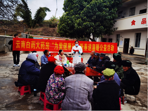 春节将至,岁寒情暖!为了帮助老人度过一个祥和、温暖的春节,2月3日上午,红土坡镇联合云南白药大药房有限公司南华连锁店走进红土坡敬老院为老年人开展了“为爱健康行”新春送温暖公益活动,为老人送上春节礼物,用实实在在的行动为老年人奉献爱心。
