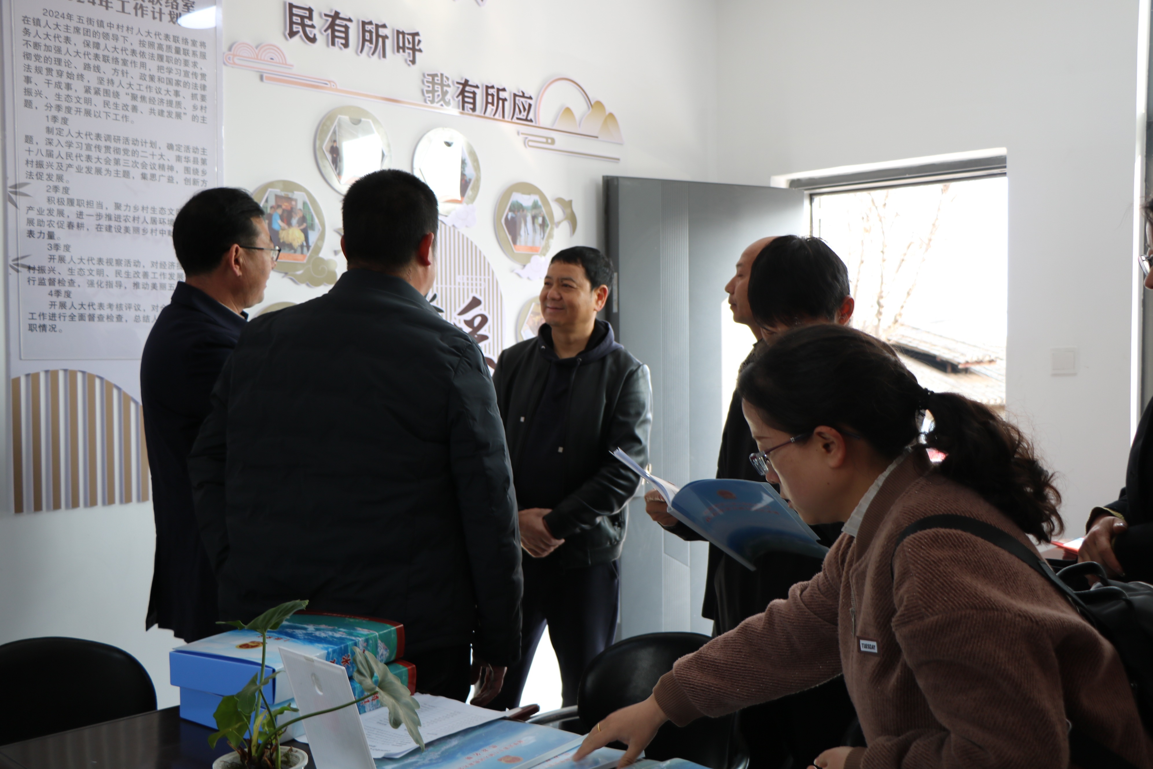 检查组根据验收实施方案标准,先后到五街镇人大代表工作站、中村村委会人大代表联络室开展检查验收工作,镇人大主席窦文达、县人大代表罗旺军分别做了人大代表活动阵地建设情况介绍。检查组查看了创建工作台账资料,深入了解人大代表活动阵地规范化建设达标创建工作情况,充分肯定了五街人大代表工作站、中村村委会人大代表联络室规范化建设创建的工作成效和做法。