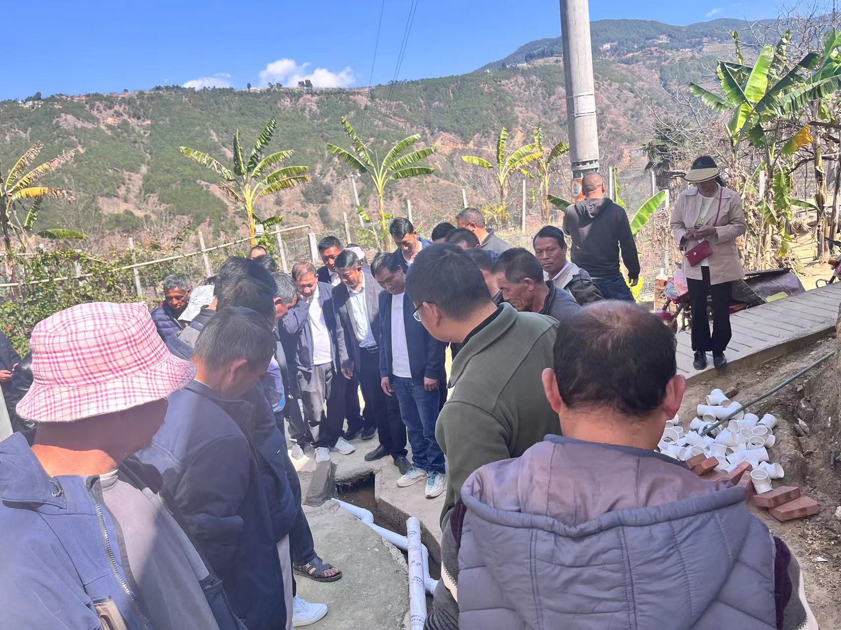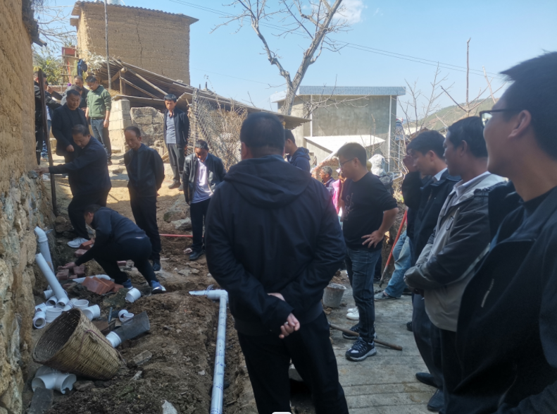 现场观摩会中,全体参会人员分别到王家村委会阿斛下小组和鼠街村委会荒田小组进行现场观摩,并听取了阿斛下小组 组长及鼠街村委会党总支书记对本村的污水管道治理规划、铺设及化粪池选址工作经验的交流分享。与会人员通过实地走访、听取讲解等方式详细了解了阿斛下和荒田两个小组的污水管网改造项目推进情况。现场观摩结束后,全体与会人员参加农村“两污”治理现场推进会。
