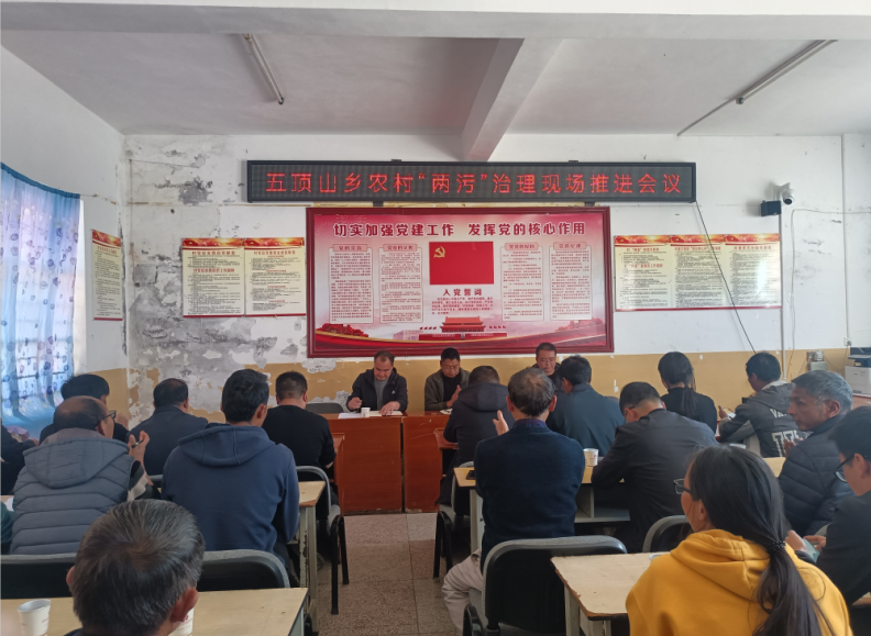 为深入贯彻落实习近平总书记关于总结推广浙江“千万工程”经验重要指示批示精神,高质量推进五顶山乡农村“两污”治理整乡推进工作,建设宜居宜业和美乡村。2月20日,五顶山乡召开农村“两污”治理现场推进会。乡党政班子成员、各村工作组组长、村“四职”干部、驻村第一书记、部分村民小组组长共50余人参加会议。