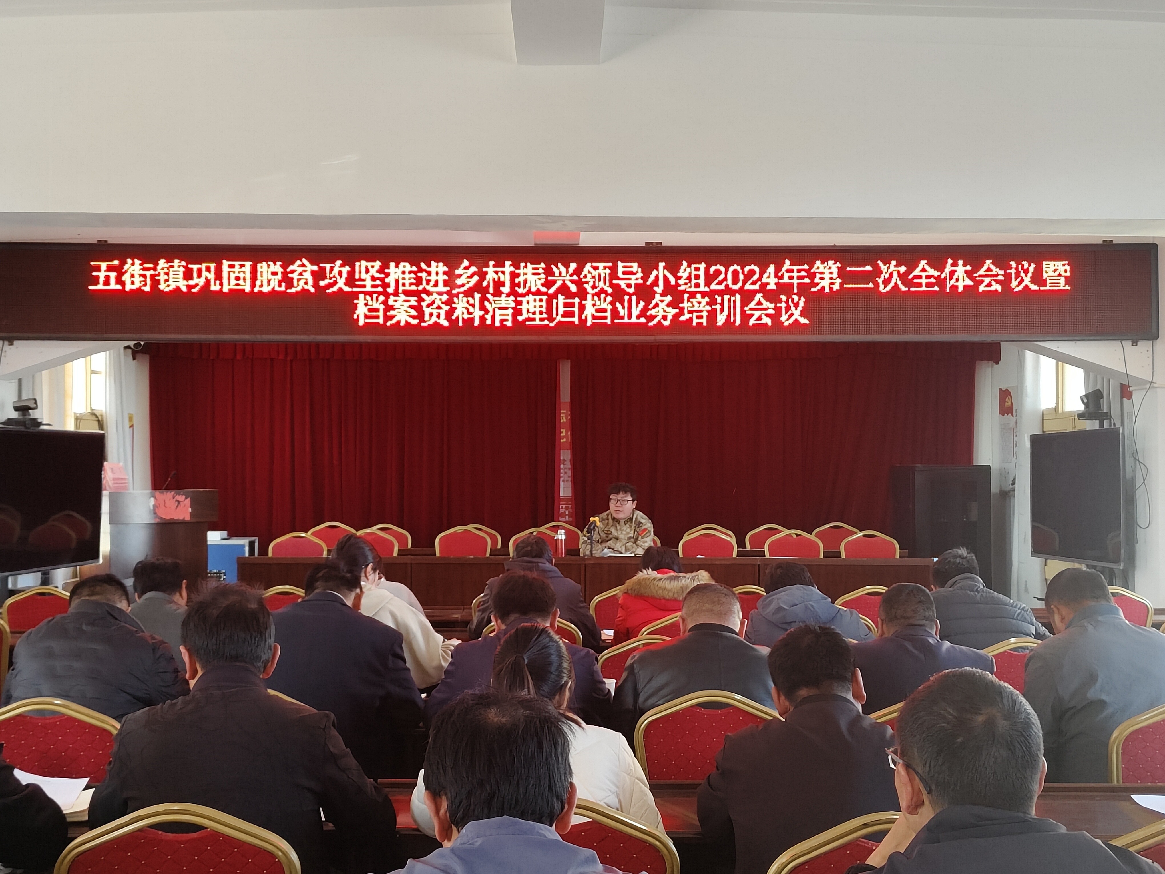 为进一步规范乡村振兴痕迹档案资料,全面做好第三方考核评估准备工作,3月6日上午组织召开五街镇巩固脱贫攻坚推进乡村振兴领导小组2024年第二次全体会议暨档案资料清理归档业务培训会议,镇人民政府分管领导、包村工作组组长、14个村村党总支书记、村委会主任、乡村振兴工作业务员参加会议。