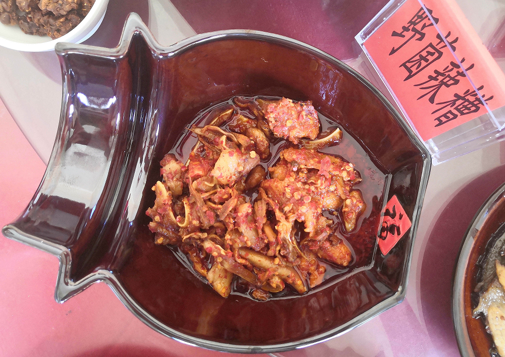 野菌辣糟:食材选用不喂饲料只喂粮食的本地养殖的猪肉为原料制作。按照当地村民的话说:“猪是奔跑的猪”。在杀年猪时用优质猪肉加辣椒制作而成,在烹饪时加入精心加工的菌根,蒸熟即可食用。有独特的味道。