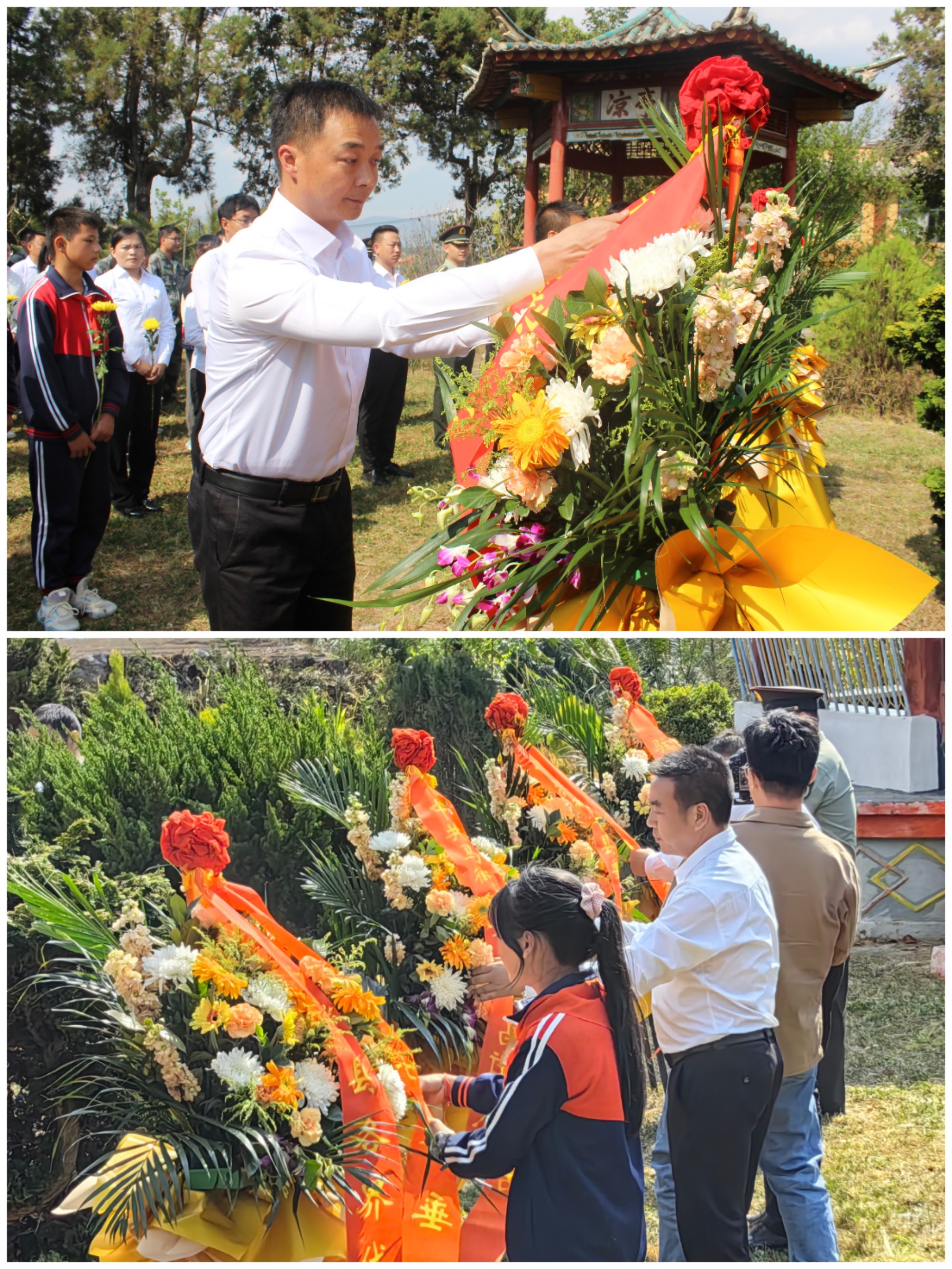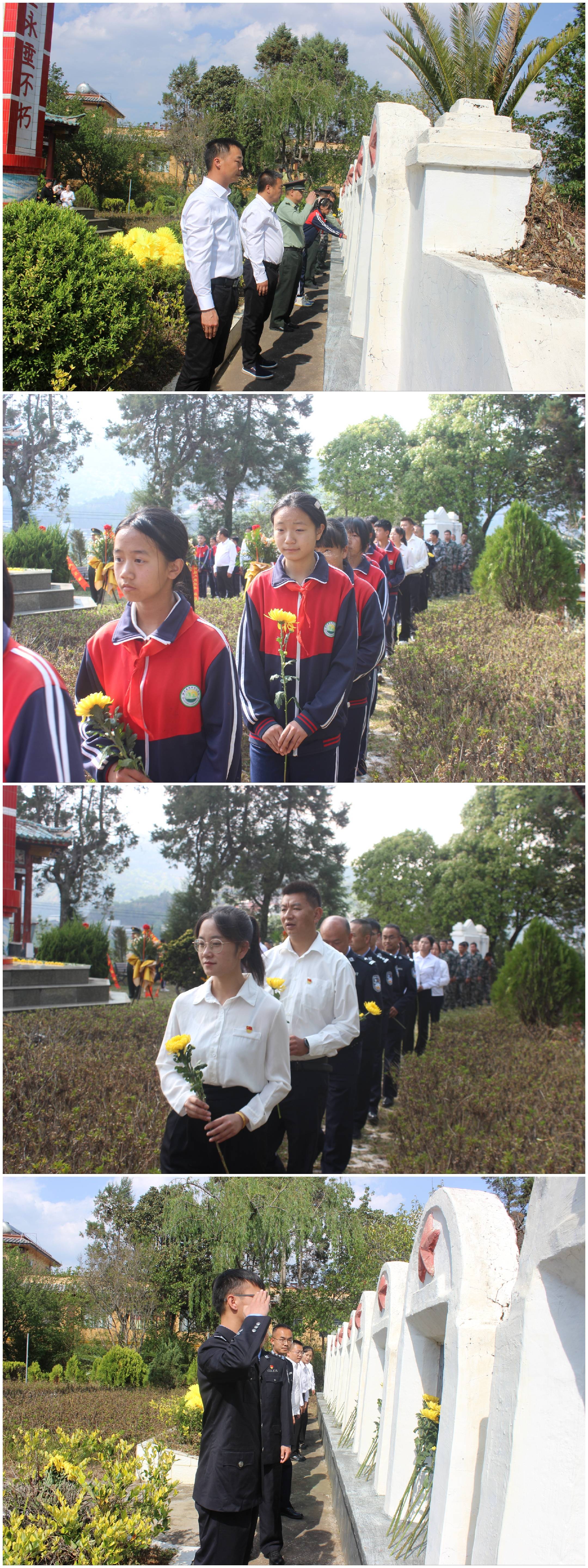 巍巍哀牢山下的烈士陵园中,革命烈士纪念碑高高耸立,庄严而神圣。祭奠活动在庄严雄壮的《国歌》声中正式开始,少先队员献唱《我们是共产主义接班人》,向烈士敬献花篮,全体人员向烈士行三鞠躬礼,全体参加祭奠活动的人员依次有序地向革命烈士敬献鲜花,并瞻仰烈士纪念碑、烈士墓,表达对革命先烈的崇高敬意和无限哀思。