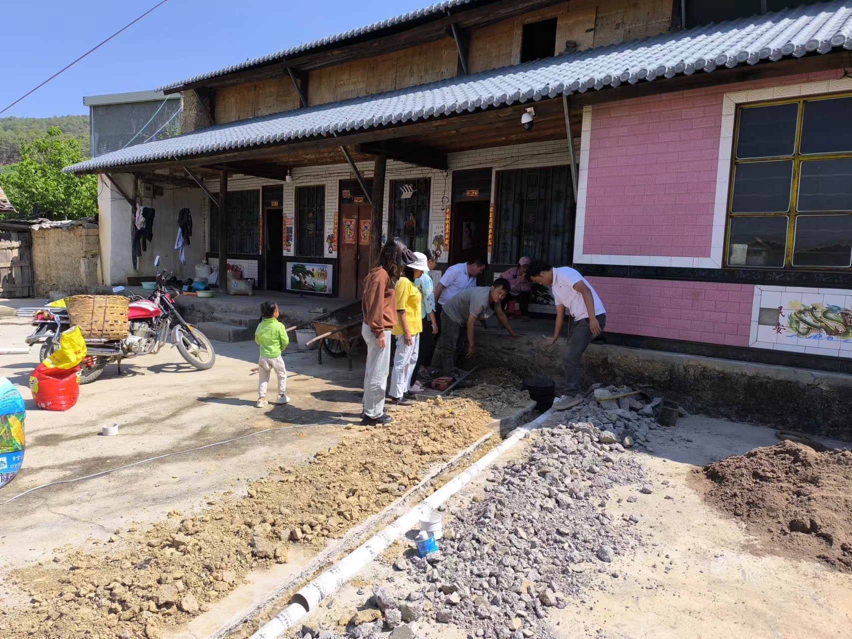 近日,五顶山乡农村生活污水治理“火力全开”。乡村两级干部、在家党员、群众积极参与,干劲十足,挖坑掏沟、接管覆土井然有序,一派热火朝天的劳动场景。“他家的完工了,我们走下一家……”这样的热闹场面,是五顶山乡开展污水治理的一个缩影。