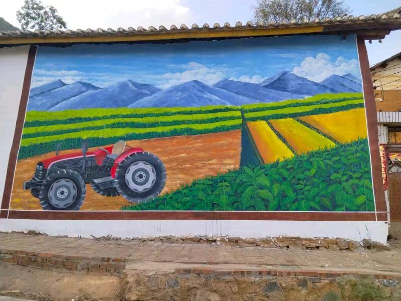 近日,在五顶山乡的各个小组,精美的图画绘制在道路两侧村民家的外墙面上,使得昔日单调的墙壁穿上了“新衣”,让原本冰冷的墙面“活”了起来,美化了乡村环境,也给农村人居环境增添了一份艺术气息。