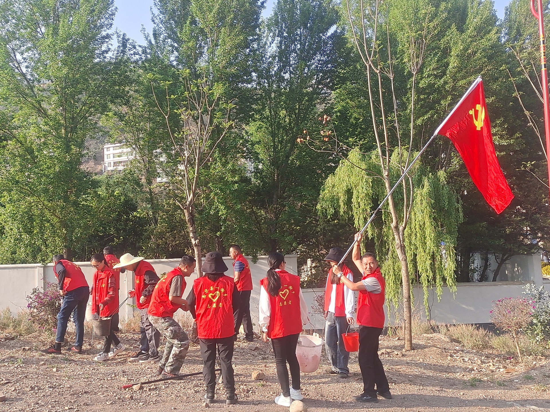 活动首先由乡党委书记、乡级总河长鲁应国同志做动员讲话,要求全体党员、干部职工充分认识开展此次活动的重要意义,充分发挥好党员干部的引领作用,开展好此次活动。随后,大家信心满满、斗志昂扬,在党旗引领下来到现场,对河道内的垃圾进行打捞、清理,对河岸种植的花草树木进行松土、除草和浇水,通过大家的相互配合,共清理河道1.7公里,打捞水面1200平方米,清理垃圾及废弃物1.2吨,保护种植花苗210株,树苗65棵。