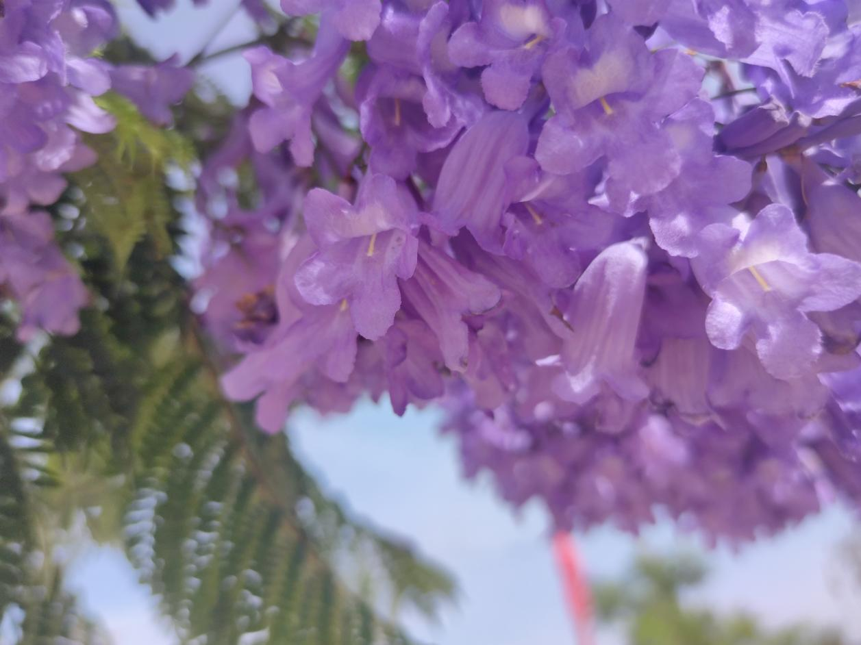 近日,罗武庄乡树密鲊村委会幸福新村蓝花楹已悄然进入了盛花期,走在幸福新村宽阔的道路上,就会和这些蓝紫色的浪漫撞个满怀,一树树紫蓝色的花朵清丽脱俗,微风拂过,一串串紫色“铃铛”随风摇曳,花瓣漫天飞舞,似乎在向人们诉说幸福新村的演变。