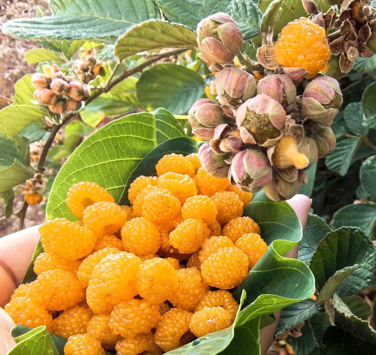 山间这边一棵,那边一丛,一颗甜的、一颗酸的,还有那颗又酸又甜的,不同的光照、不同的位置、不同的口感,摘下的每一颗“黄泡”的味道都好像拆盲盒一般充满了乐趣,一颗接着一颗,一捧接着一捧,瞬间盛满了一个快乐的初夏!