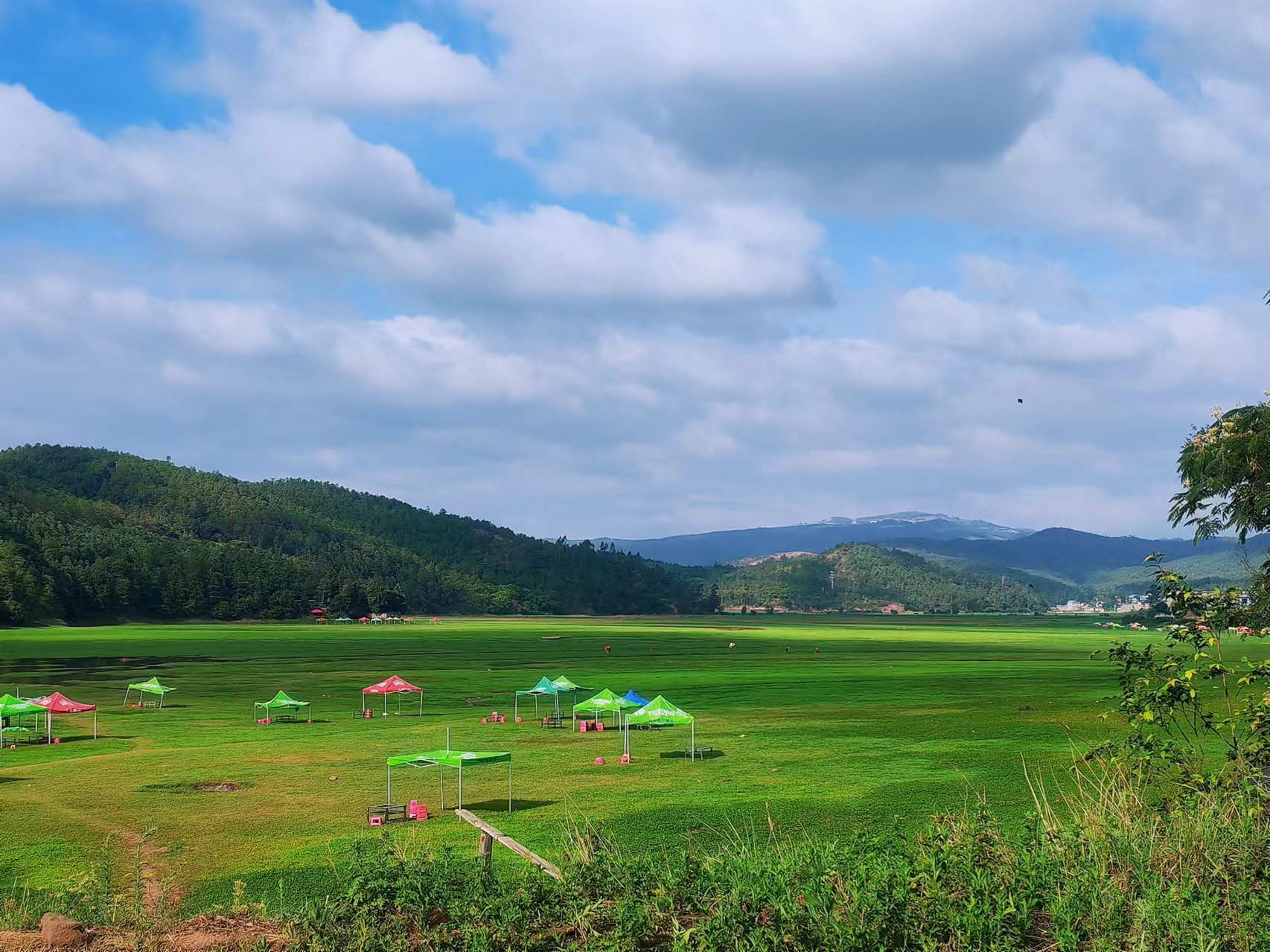 六月,几场雨水滋润过后,沙桥凤山湖已经绿意盎然,小草悄悄发芽,给凤山湖铺上了一层绿色的地毯。在天气晴好的时候,走入其中,蓝天、白云、远山、草地、牛群、游客交织成一幅唯美的画卷,仿佛置身宫崎骏的动漫世界,美不胜收。