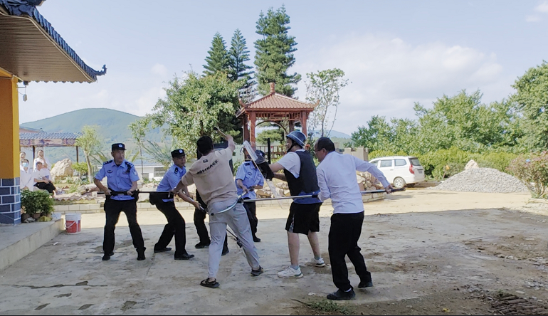 为进一步增强辖区医院干部职工的反恐防暴意识,提高应对突发暴力事件的能力,马街派出所主动担当,深入马街卫生院开展反恐防暴实战演练。演练现场模拟了一名“暴徒”强行闯入医院,医生和病人安全的场景。卫生院保安人员发现异常后迅速反应,立即启动报警装置,并手持防暴器械与“暴徒”展开周旋。马街派出所接到报警后迅速出动,在最短时间内赶到现场。民警分工明确、配合默契,迅速将“暴徒”制服并带离现场,成功解除危机。