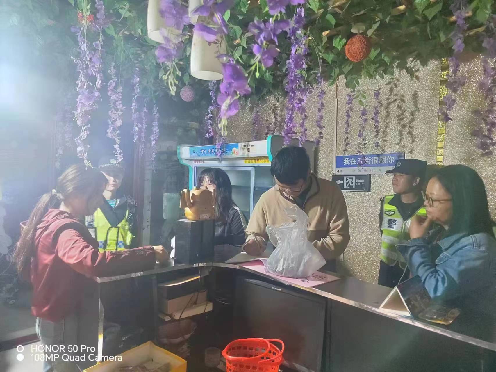 此次行动按照镇党委、政府部署,统筹了综治、公安、市监、社保、食安、教育等多股力量,按照纵向到底、横向到边的原则,对辖区内的餐馆、宾馆、酒吧、烧烤摊、KTV等重点行业、重点领域开展联合执法检查。