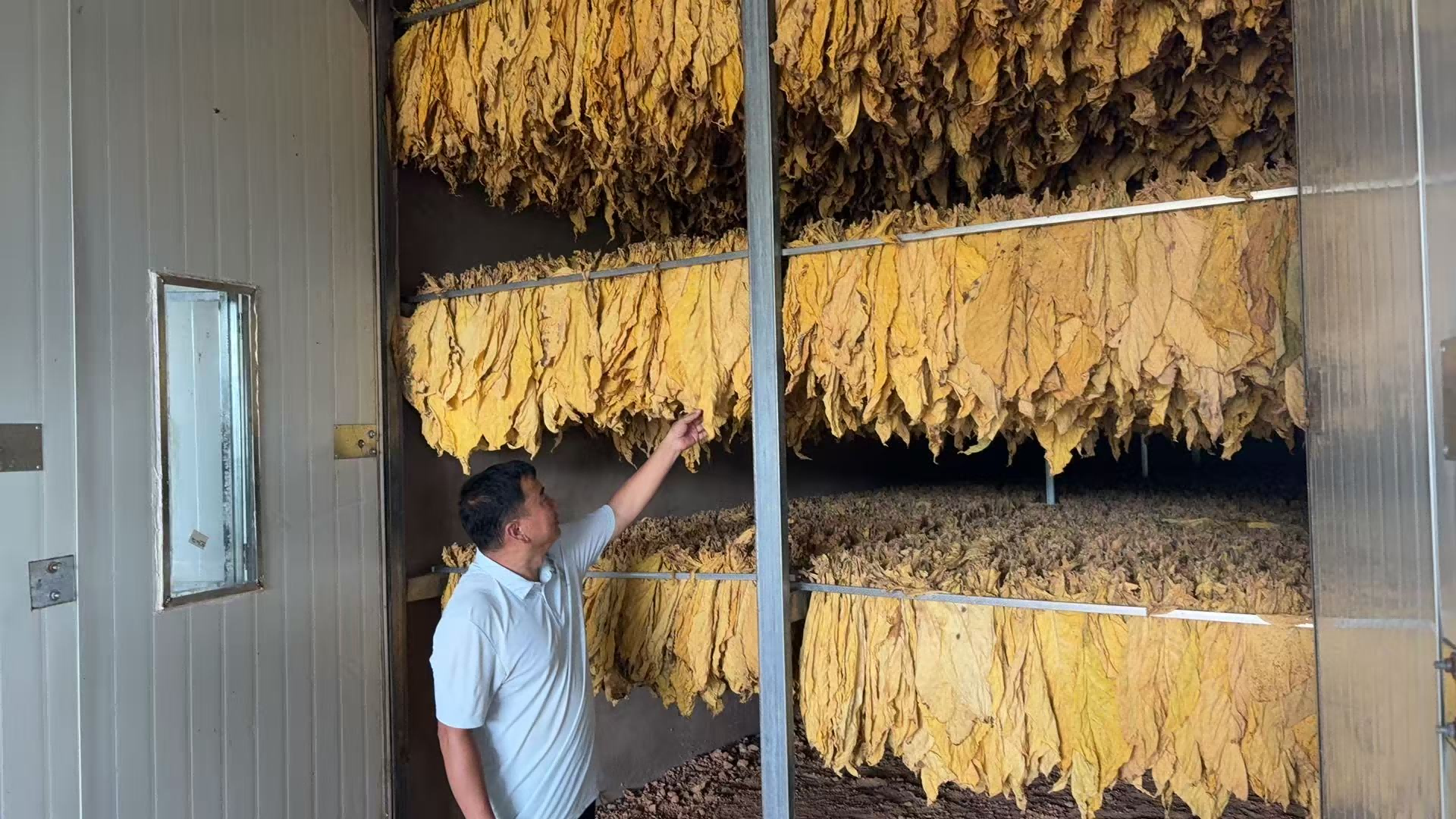 走进罗武庄乡,连片的烟田郁郁葱葱,长势喜人。烟农们穿梭在烟株间,熟练地对成熟的烟叶进行采摘、搬运,脸上洋溢着丰收的喜悦。烤烟房内外,同样是一派热火朝天的忙碌景象,搬运、分拣、编烟、挂杆、入炉,一杆杆整齐的鲜烟叶被送往烤房,每个环节都精细有序。