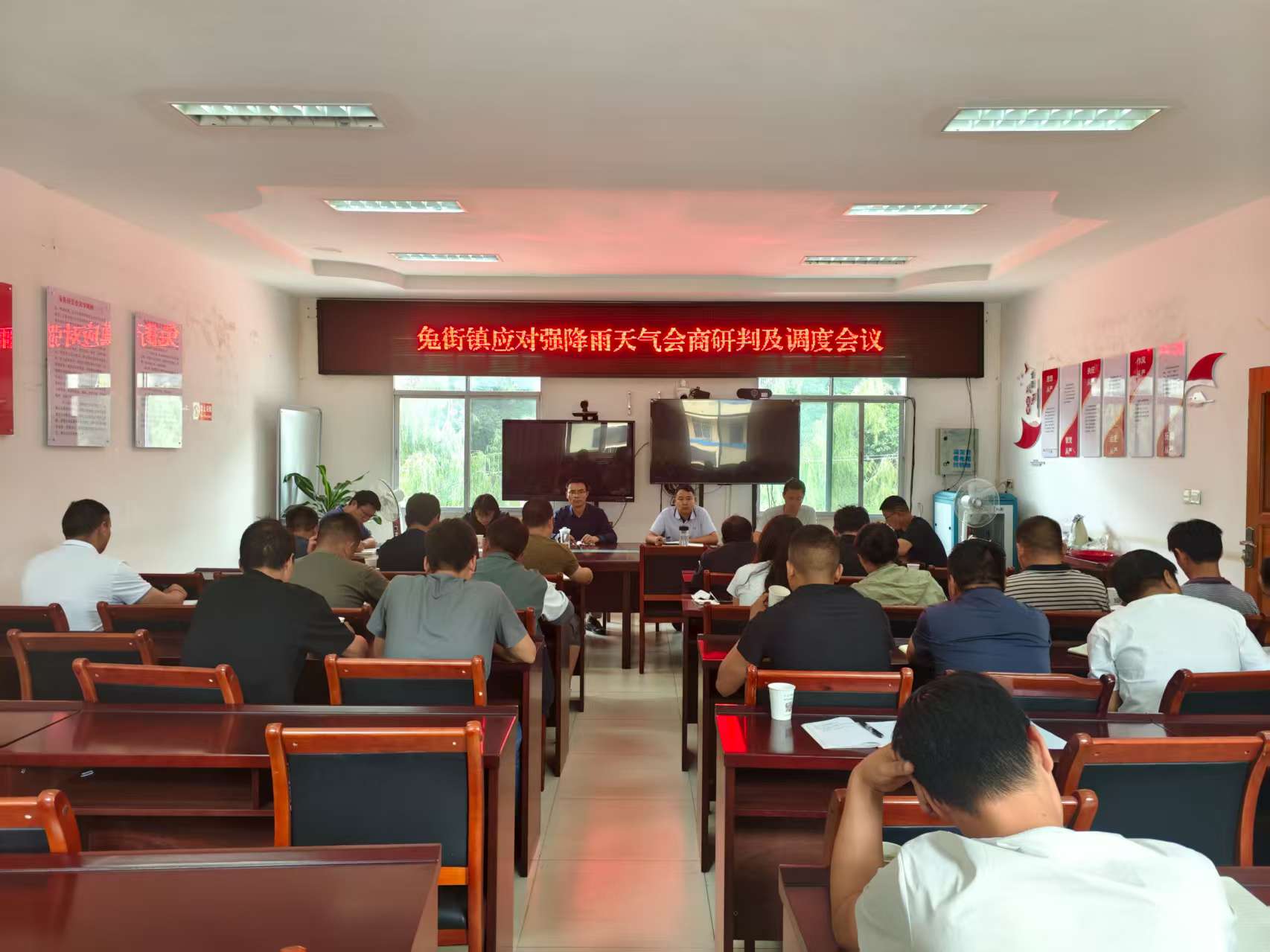 为切实做好强降雨防范应对工作,坚决维护人民群众生命财产安全,8月20日下午,兔街镇组织召开应对强降雨天气会商研判及调度会议。镇党政班子成员、各村党总支书记、村委会主任以及11个村包村工作组组长共计20余人参会。
