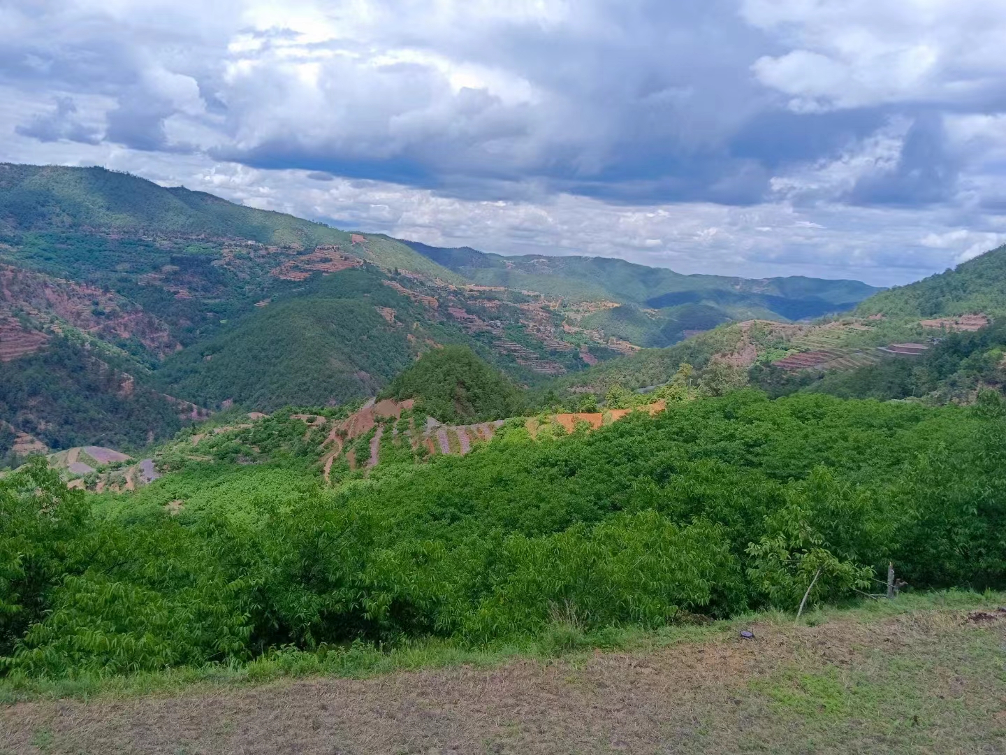 五街的夏天是绿色的。骄阳似火的午后,最勤劳的农人都要避让,路边郁郁葱葱的核桃树就是天然的遮阳伞,微风轻起,蝉鸣声声,树下闲坐,是独属于夏天的悠闲,透过阳光能看见叶脉的绿,温度柔和了下来,翠叶繁枝筛落无数的光影,在炙热的路面上深深浅浅的跳跃,大人们在树下扯着绣线,在布料上绣出彝山的花草树木,断断续续闲聊,家长里短和柴米油盐也变得平淡而温馨,孩子们嬉笑打闹的声音飘得很远,惊动了树上的鸣蝉,开始攀比谁的声音更响亮。屋后的松树林正在孕育着松茸,清风拂过,松针摇曳碰撞发出的声音治愈得让人想睡觉,展开双手任清风带走满身疲惫,一起吹过夏风的人,大概会记得很久很久吧。