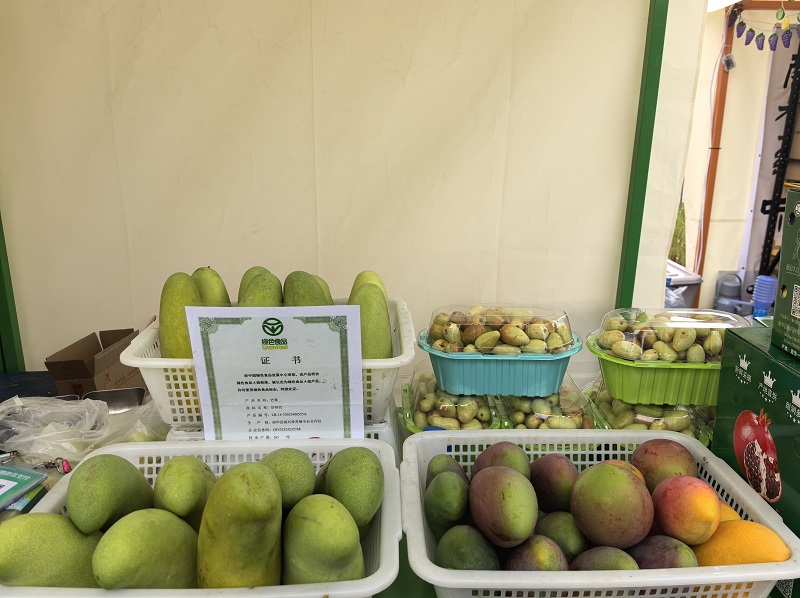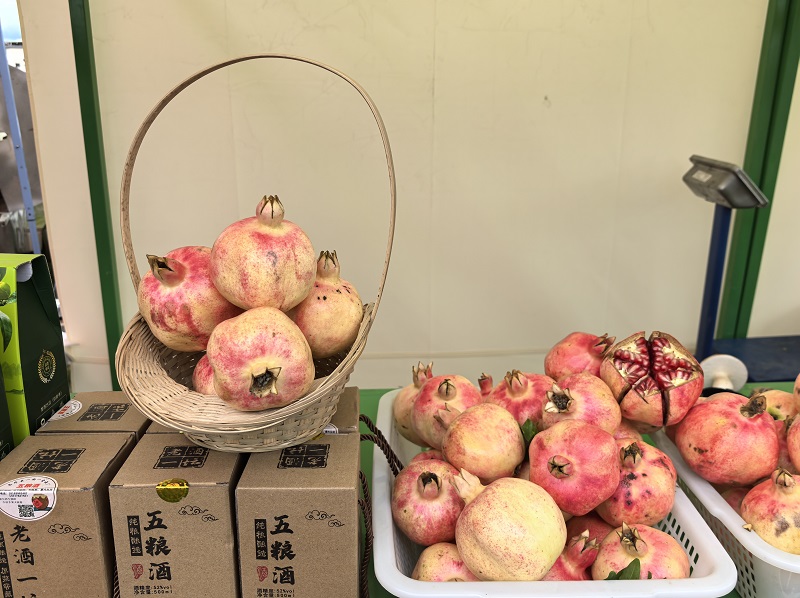 一街的展位上,刚摘下的水果堆成了小山。阳光晒透的石榴泛着红晕,拨开一个,石榴籽晶莹剔透;硕大的青芒散发的淡淡芒果清香,咬一口汁水四溢;还有一蓝篮高钙小枣,鲜脆清甜的滋味足以满足味蕾。“这些都是咱团山村果园里的,不催熟、不打蜡,还有国家绿色食品认证哦,咱吃的就是这口新鲜。”果农朱辅章一边给试吃的游客递上切好的果块,一边笑着说。