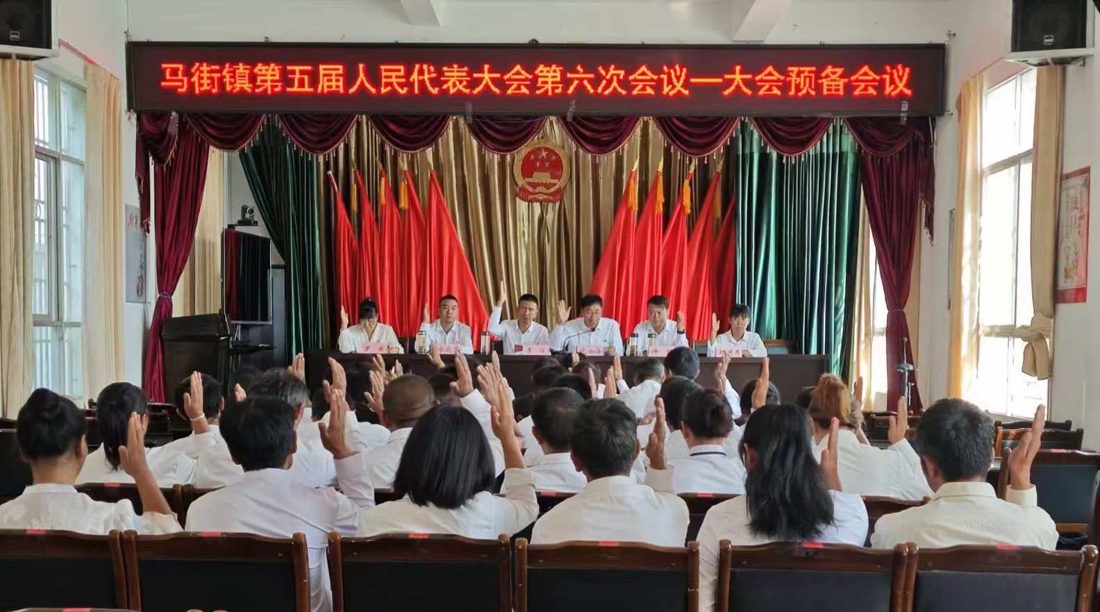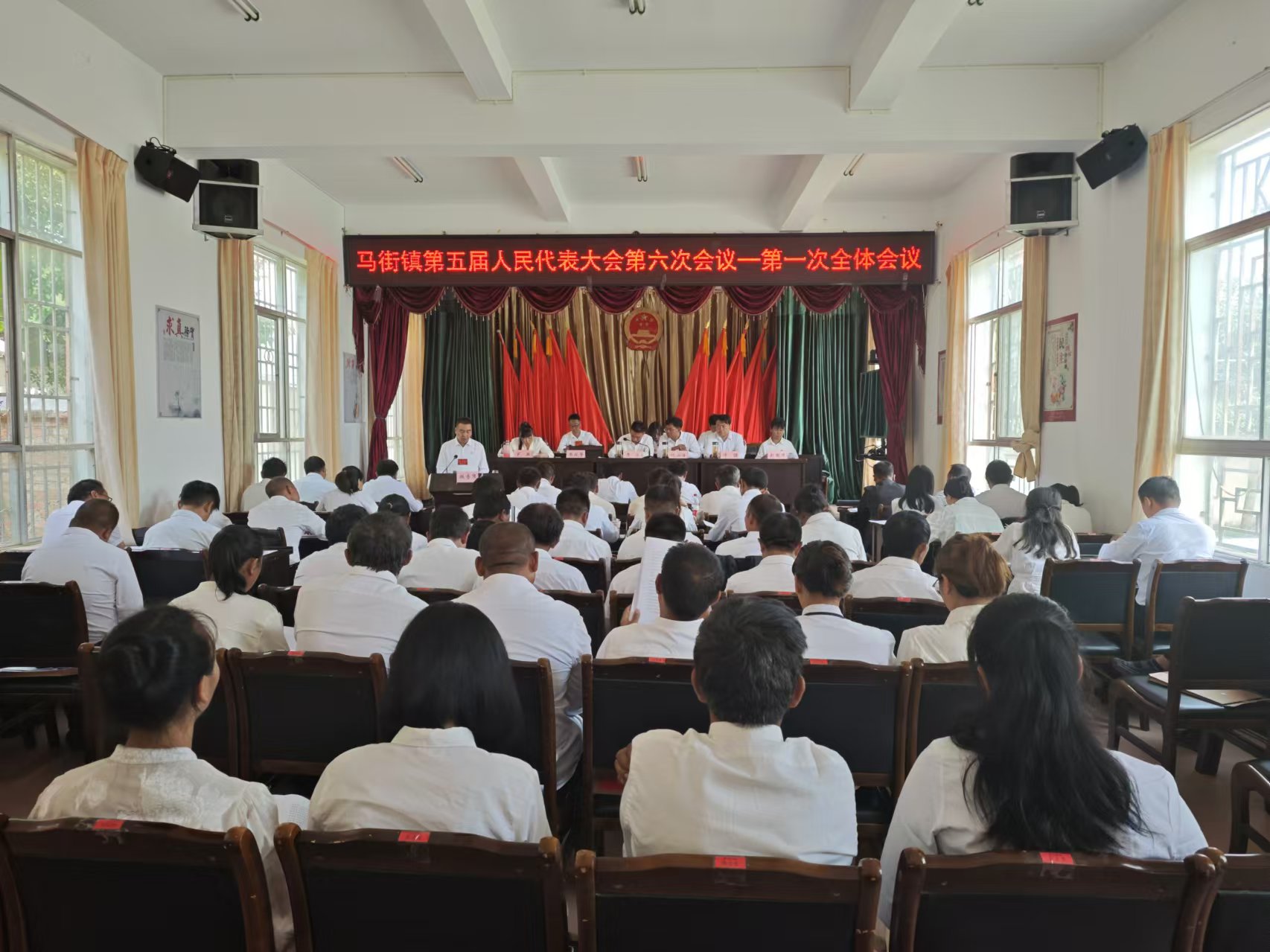 马街镇第五届人民代表大会第六次会议在庄严的国歌声中隆重开幕。