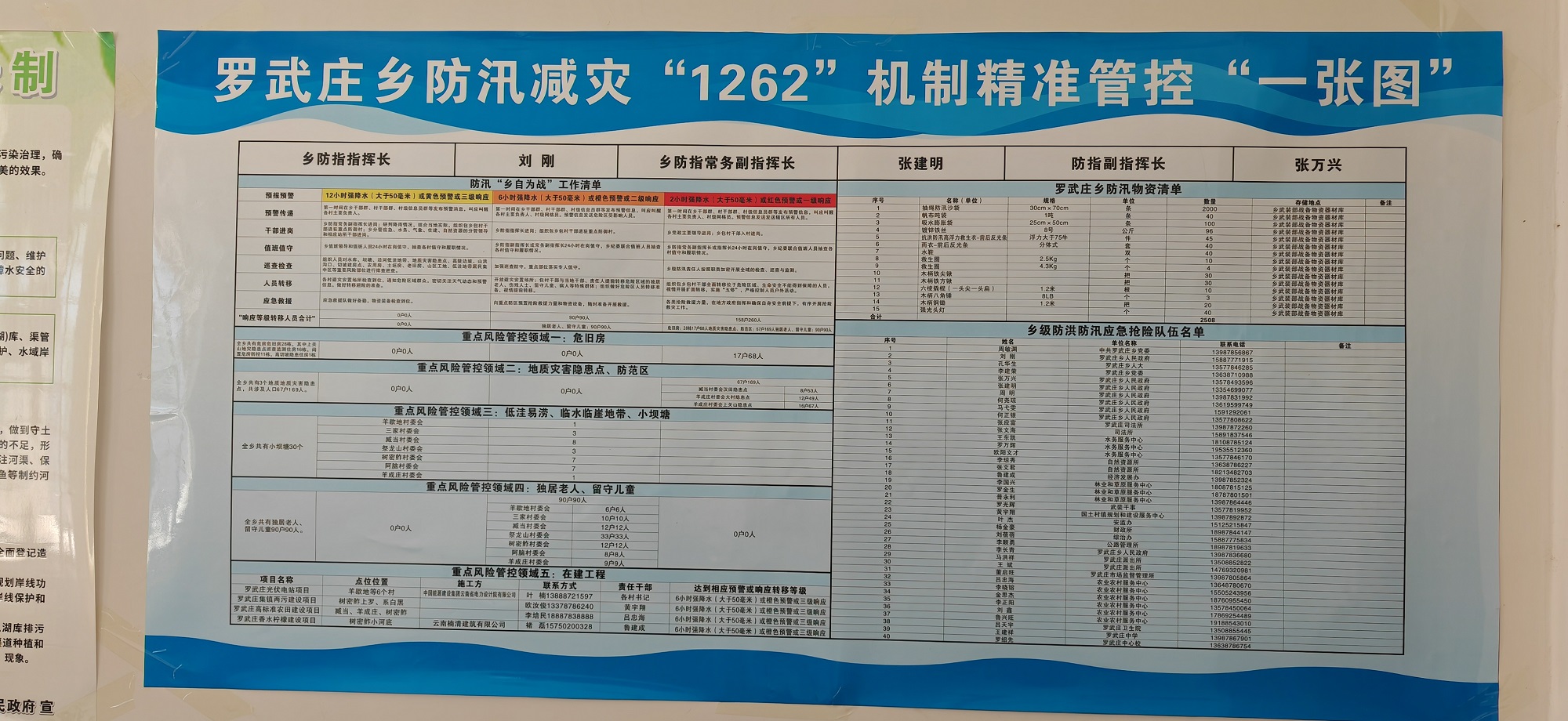 入汛以来,按照“早准备、早安排、早排查、早落实”的原则,罗武庄乡迅速启动落实汛期工作机制,第一时间召开防汛调度工作会议,严格落实省、州、县关于防汛救灾工作的要求,建立“一对一”三级包保责任清单,完成汛期安全隐患排查整治2个,开展山洪和地质灾害避险演练90场次,储备防汛物资2508件,建立防洪防汛应急抢险队伍40人,建设防溺水“四个一”工程30套,以“时时放心不下”的责任感和分秒必争的紧迫感,认真抓好防汛抗灾各项工作。