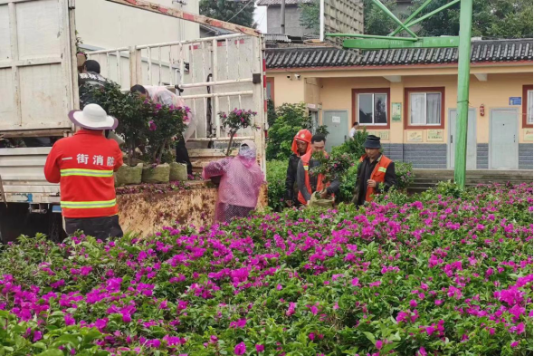 为扎实推进“绿美公路”建设,一街乡人民政府先后向各村发放15500棵三角梅、2750棵石榴、4750棵芒果、2000棵沃柑,由各村书记带队,组织群众出工出劳,开展沿线道路的花树移栽和管理工作,让原本裸露的边坡都覆盖上绿植。这些绿色植被不仅美化了道路环境,还起到了净化空气、调节气候的作用,使农村地区的生态环境得到了显著改善。特别是移栽三角梅的南景线(省道)、王红线(县道)、咱长线(乡道)、六把姑至锦绣彝村线(村道)路边呈现一条条排着整齐队伍开着紫红色花的三角梅,格外艳丽,呈现出一派生机勃勃的景象,让人心情愉悦的同时,也为道路增添了一道整洁又靓丽的景色线。