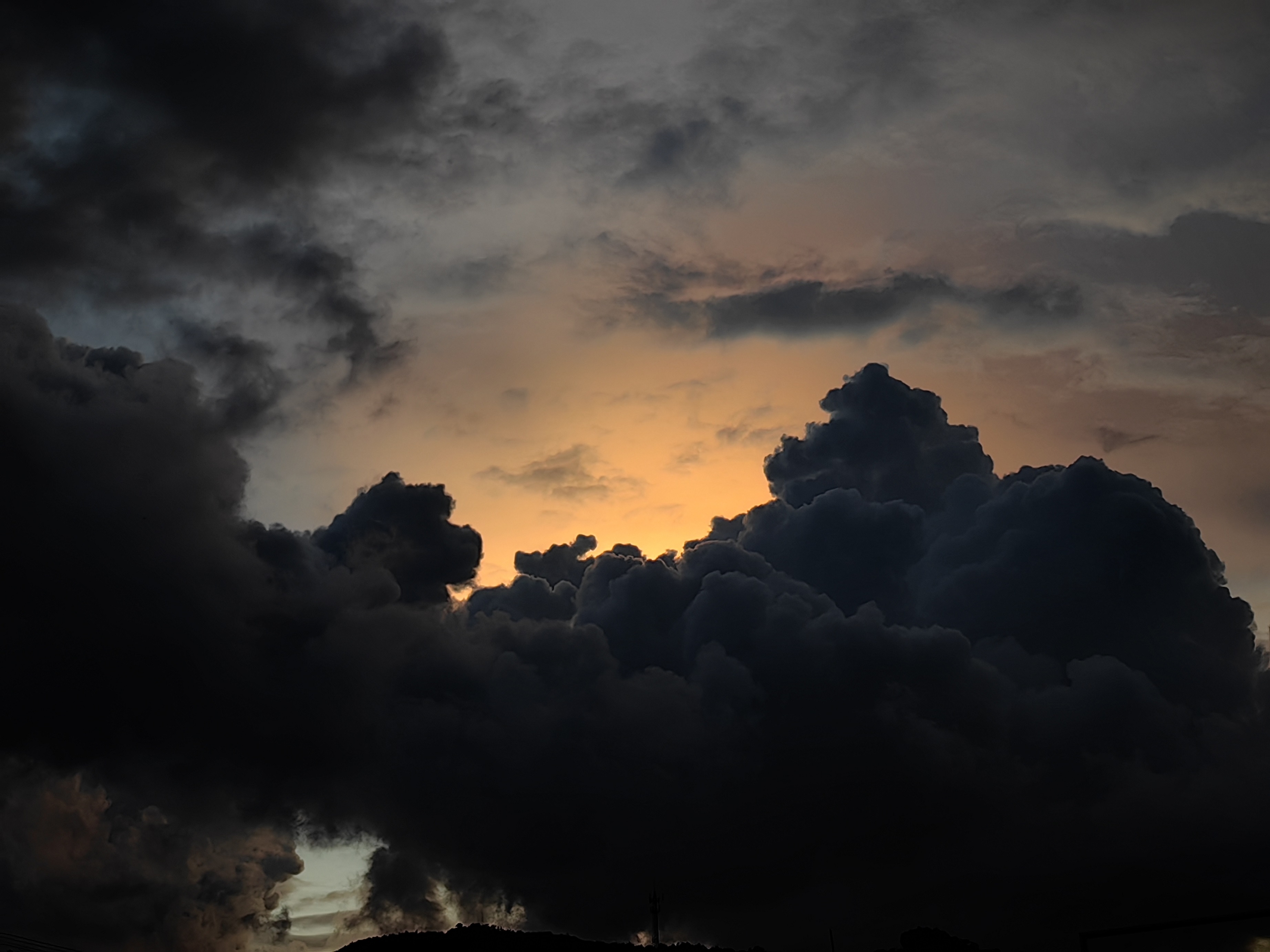 至于清晨和临近夜晚的云,偶尔会被光染上色彩变成霞,大部分还是灰扑扑的模样,透着白光或者带着浅金色的边。极少数会遇到那种黑色的云,像调出来的色彩,背后是落日未尽的余晖,煞是好看。