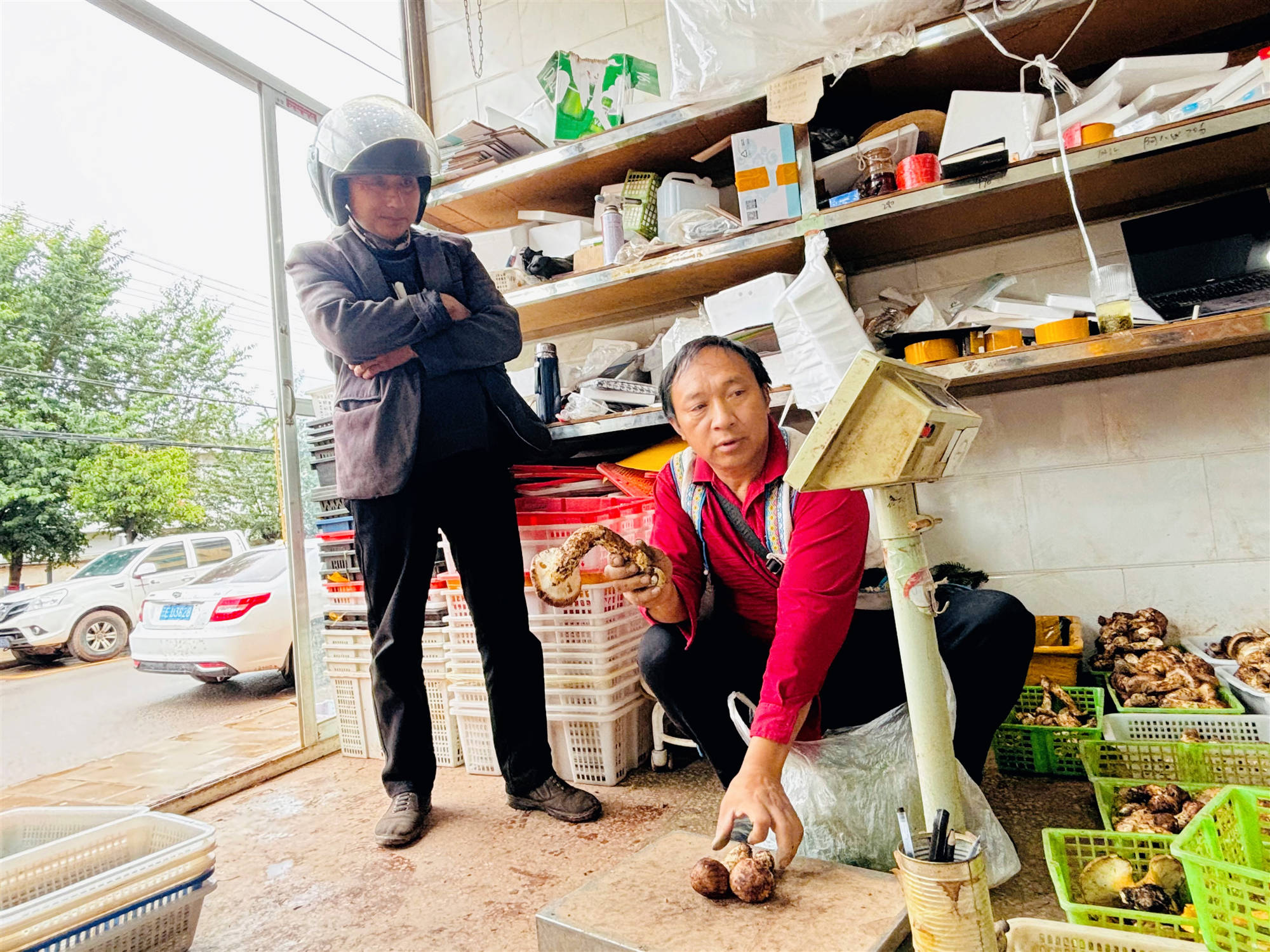 在五街镇野生菌交易中心,前来购买松茸的客商络绎不绝。“今年的松茸季销量喜人,中秋这几天我们平均一天要卖出去30公斤左右,价格在500元到800元每公斤不等。”五街镇松茸销售商家鲁有胜说。