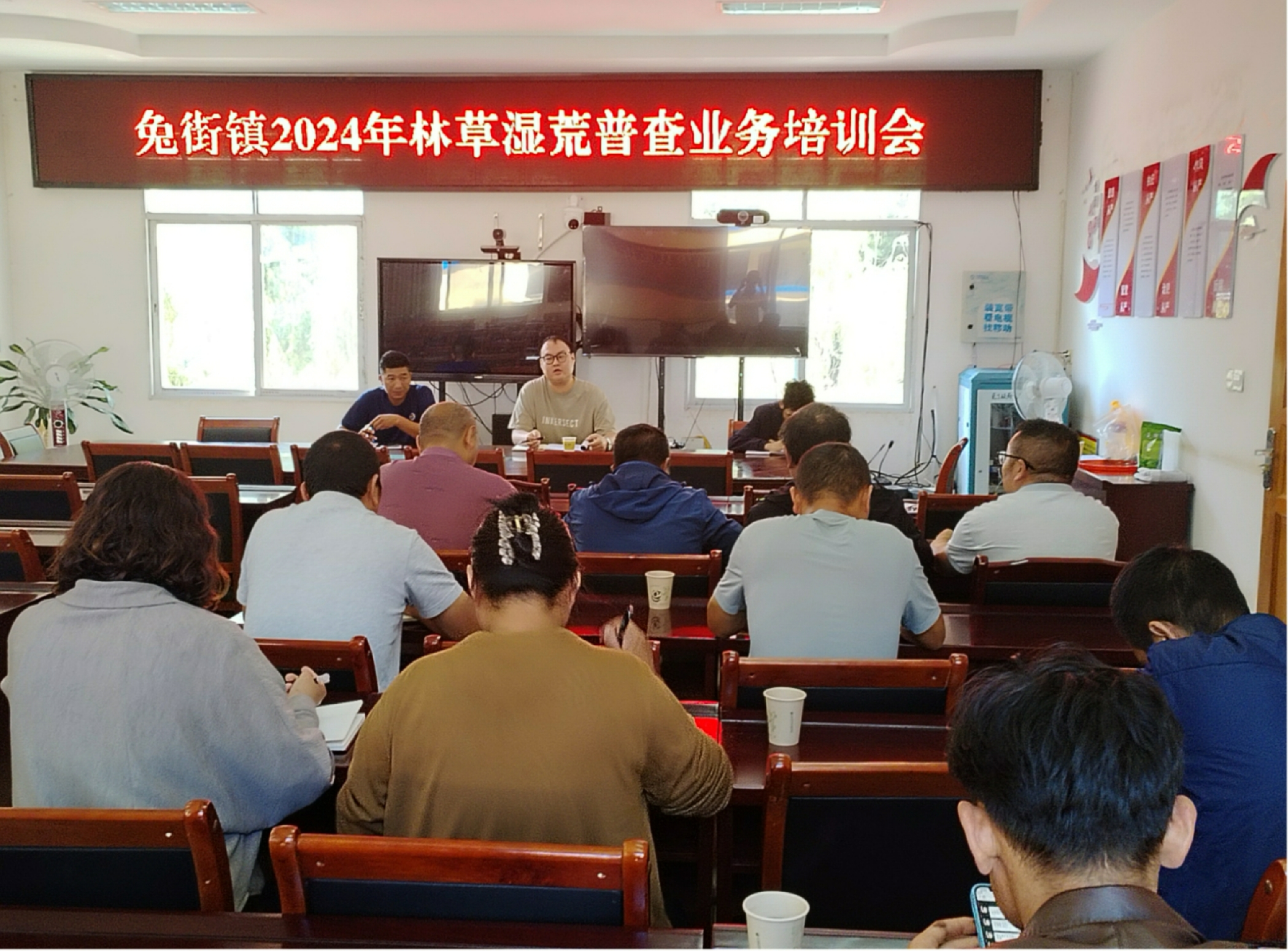 为全面核实兔街辖区植被覆盖类型与国土调查地类不一致的问题,摸清全镇草原湿荒资源质量、结构、管理等状况,2024年9月24日,兔街镇组织各村林草专管员集中进行林草湿荒普查和法规知识宣传培训。