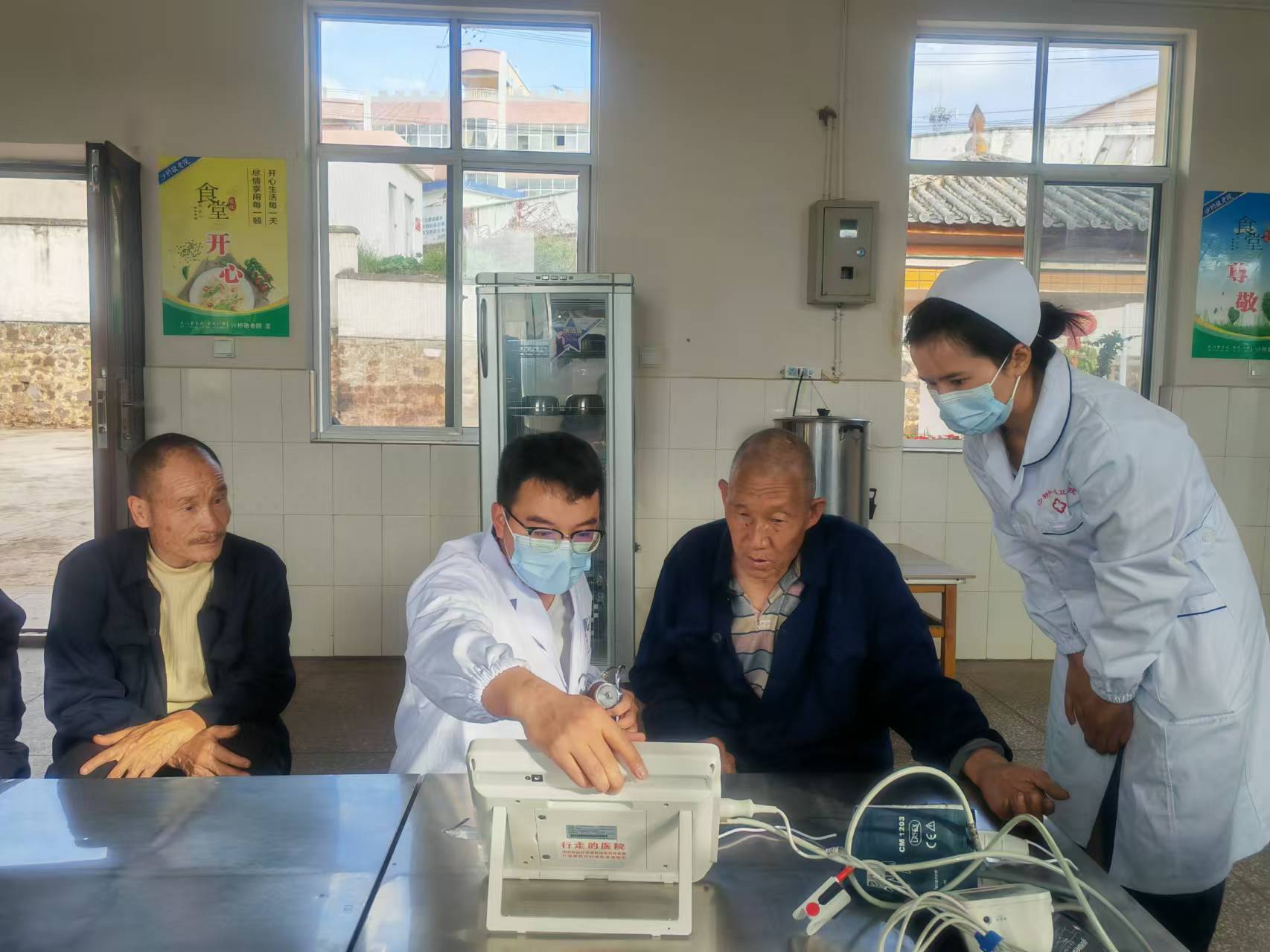 开展一次爱心义诊活动。邀请沙桥镇卫生院医务人员到沙桥镇敬老院为敬老院的19名老人免费上门健康检查,开展爱心义诊活动,为老年人免费量血压、测血糖,耐心询问他们的身体状况、慢性病史以及日常用药等情况,仔细倾听着老人每一个健康问题和就医诉求。针对患有慢性疾病的老人,给予专业的治疗建议和健康指导;对于血压、血糖异常者,提醒他们按时服药、合理饮食、适当运动,让老年人在重阳节期间感受一次贴心的医疗保健服务。