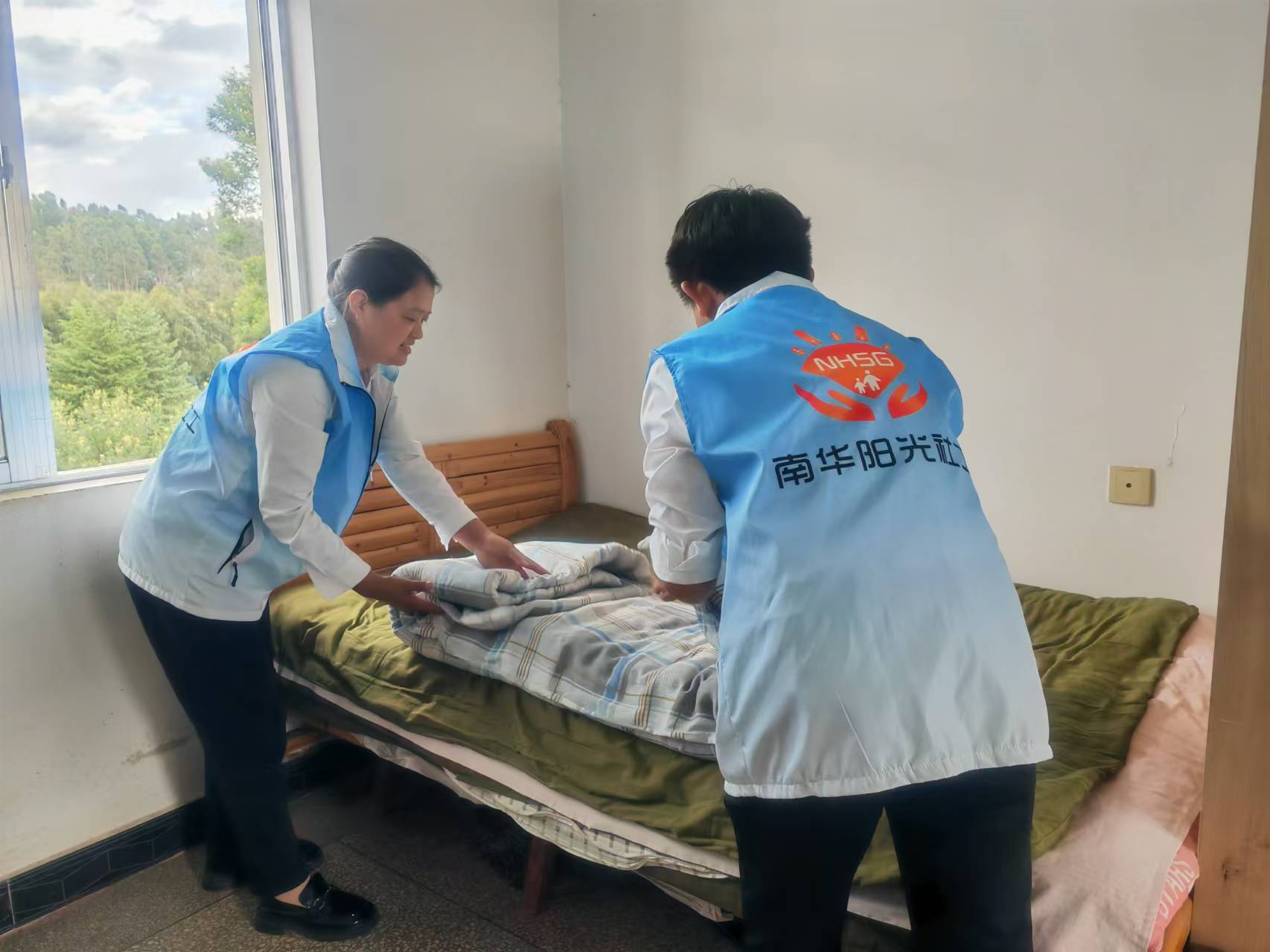 开展一次志愿服务活动。10月10日,沙桥镇联合南华县公安局、南华县民政局相关工作人员到沙桥镇敬老院开展志愿服务和爱心慰问活动。南华县公安局志愿者们为老人们送去了水果和牛奶等慰问品,并开展了卫生清扫等志愿服务活动;南华县民政局的志愿者们为老人们带来节日蛋糕,志愿者和老人们团团围坐,共同分享甜甜的节日蛋糕,祝福老人健康长寿;同时,沙桥镇社会事务办工作人员和南华县民政局志愿者们一起,给老人们提供理发、刮胡子、整理内务等志愿服务,并和老人们亲切交谈,详细了解老人们的饮食、住宿及身体健康状况。