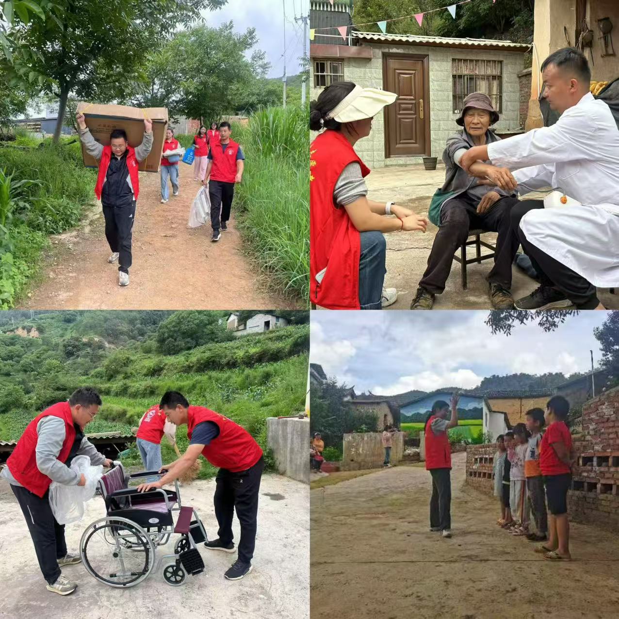 朝夕关爱活动, 点亮“志愿红”。“一老一小”牵动千万家庭,为做好“一老一小”关心关爱服务工作,五顶山乡坚持党建引领,依托新时代文明实践中心,聚焦“一老一小”群体需求,通过季度巡查、月走访对6个村委会“一老一小”进行全覆盖走访调研,志愿服务队通过节假日走访、主题党日活动等开展“一老一小”关爱服务活动10余次,通过实际行动不断增强留守老年人、特殊困难老年人和留守儿童、困境儿童的获得感、幸福感、安全感。今年来,为提升服务质量,五顶山乡还打造了“一老一小”时光驿站,待建设完成后,将成为老人、孩子休息娱乐的场所,志愿服务队也将利用街天、周五等人员密集的时段,免费提供量血压、测血糖等基础医疗服务,免费理发、提供热水、政策咨询、法律咨询等便民服务,