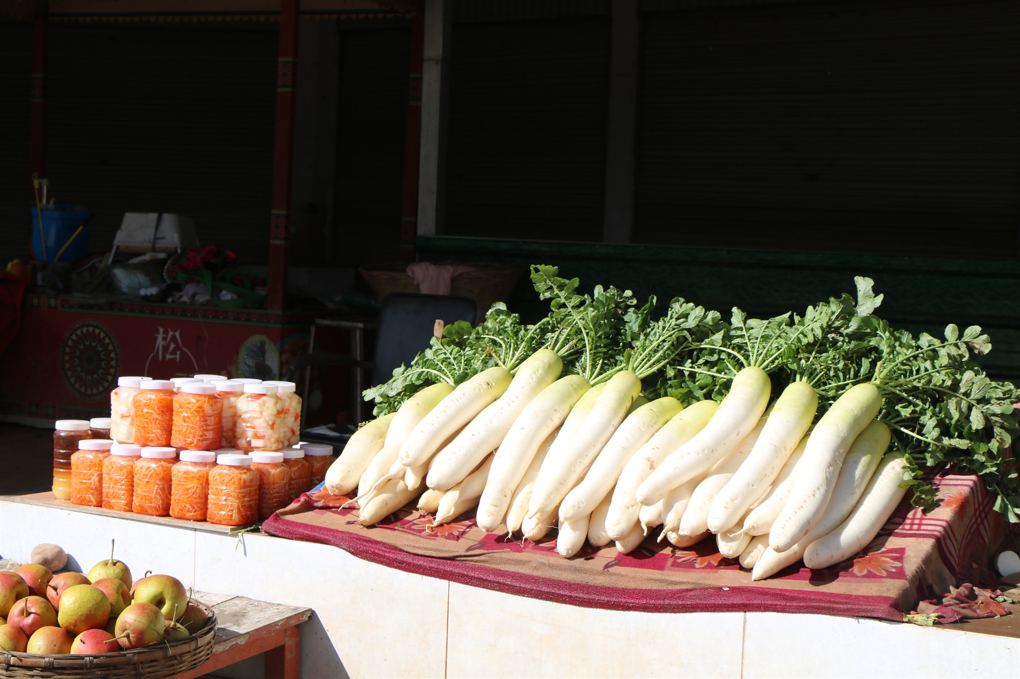 随着萝卜的丰收,五街镇的农产品交易市场也迎来了繁忙时刻。在中村农特产品交易市场,当地村民正在售卖着自家的新鲜萝卜。“我家的萝卜都是自家种的,品质有保证,口感也非常好。”村民鲁拾凤介绍道。而她的萝卜也确实受到了买家的青睐,不一会儿就被抢购一空。
