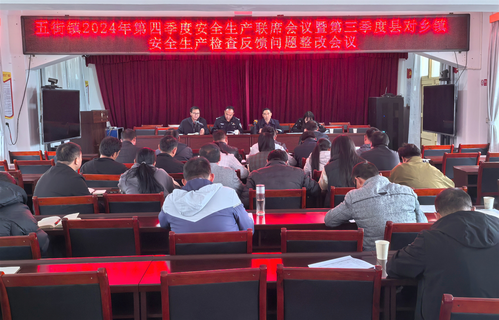 为扎实做好近期安全生产工作,全力防范化解重点领域安全风险,牢牢守住安全生产底线,杜绝重特大事故,严控较大事故,减少一般事故,确保全镇社会大局和安全生产形势持续稳定,10月22日下午,五街镇召开2024年第四季度安全生产联席会议暨第三季度县对乡镇安全生产检查反馈问题整改会议。