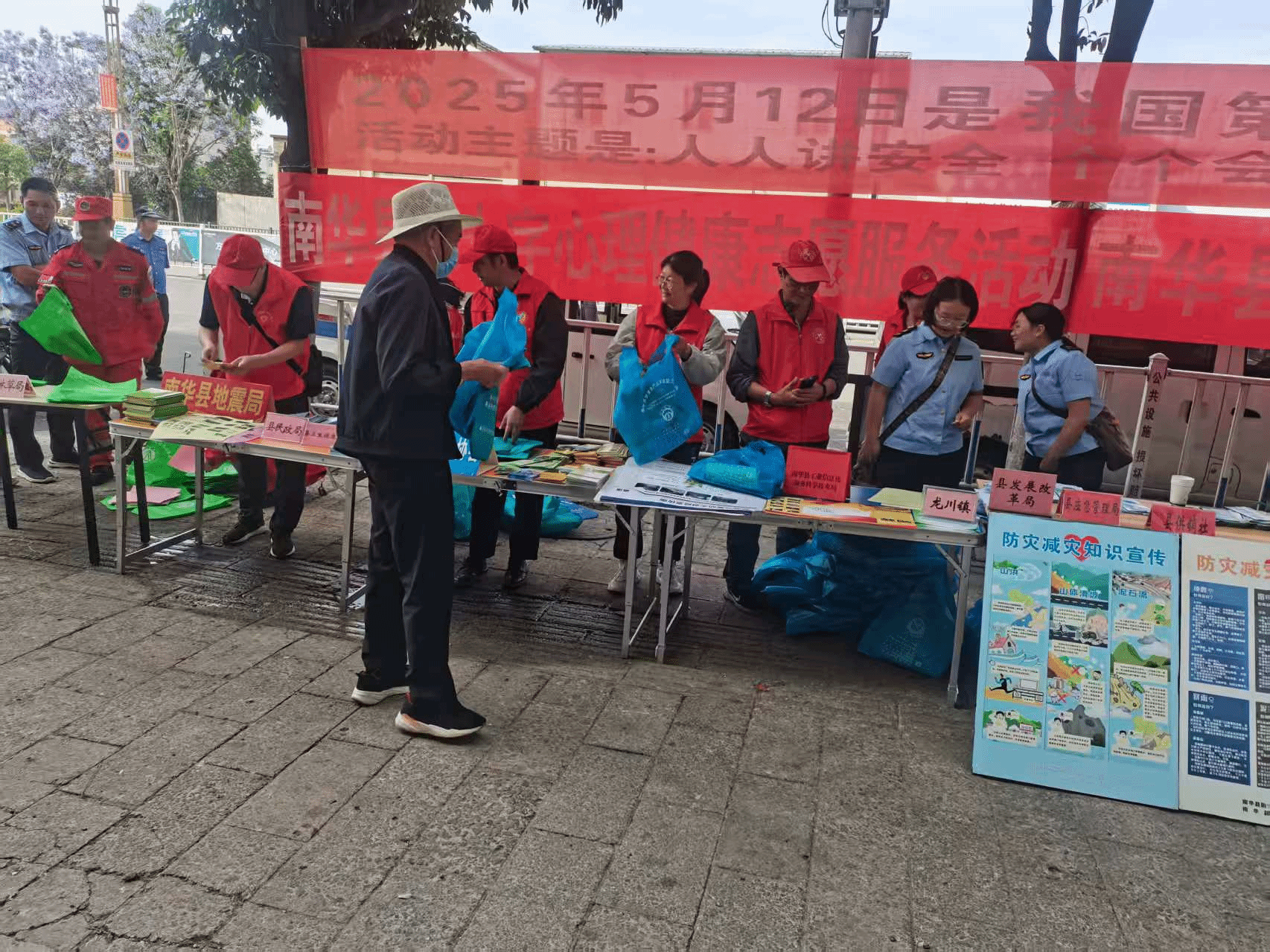 2025年5月12日是第17个“全国防灾减灾周”,为进一步普及推广防灾避险知识,龙川镇以“人人讲安全、个个会应急——排查身边灾害隐患”为主题,在北城农贸市场门口组织开展“5·12”防灾减灾日宣传活动。